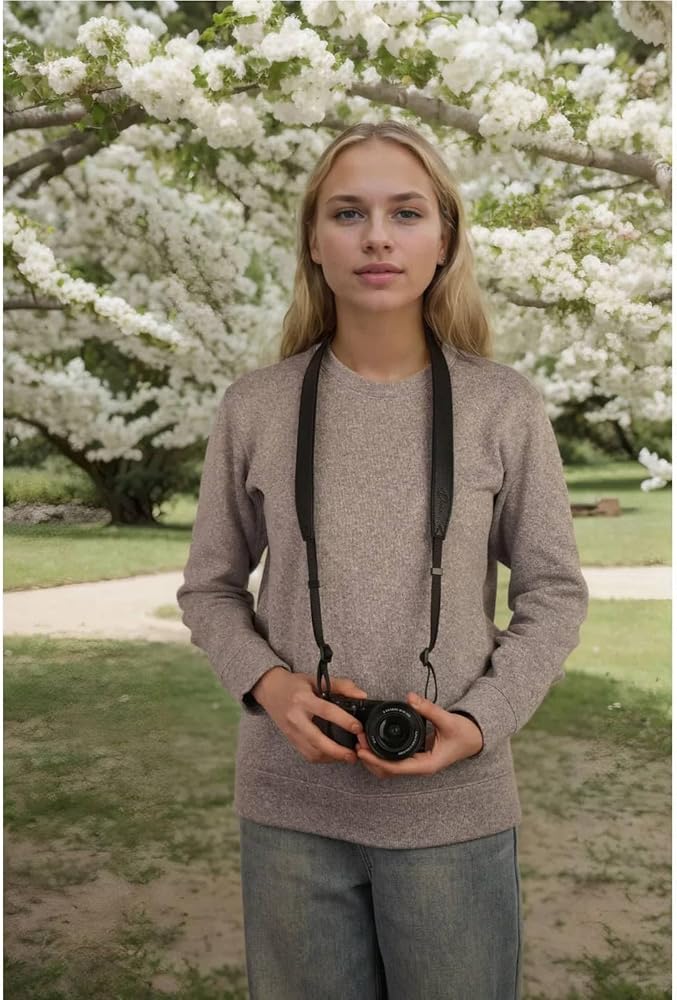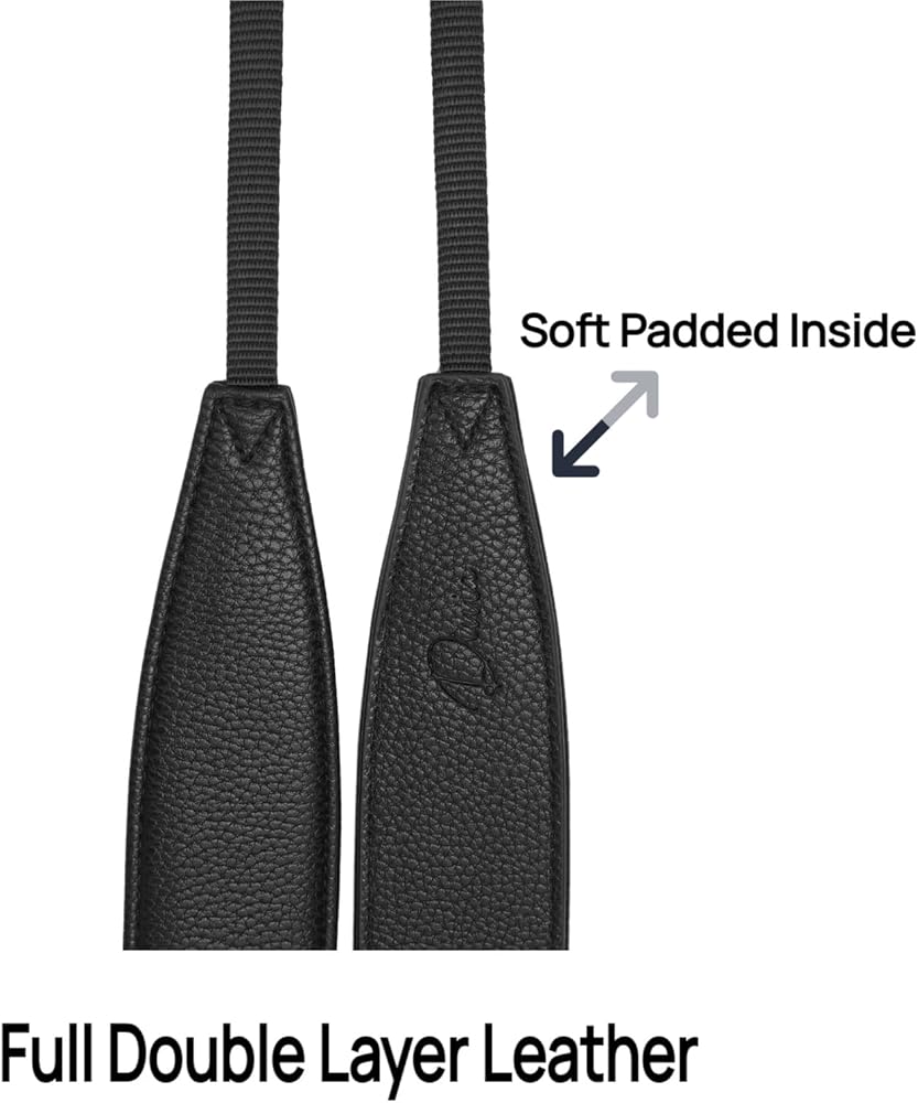 متين ودائم: يمكن أن يمنع الملمس على الجلد الانزلاق والحفاظ على استقرار جيد للكاميرا. تم تصميم حزام الكاميرا ليحمل وزنًا أقصى قدره 22 رطلاً (10 كجم)