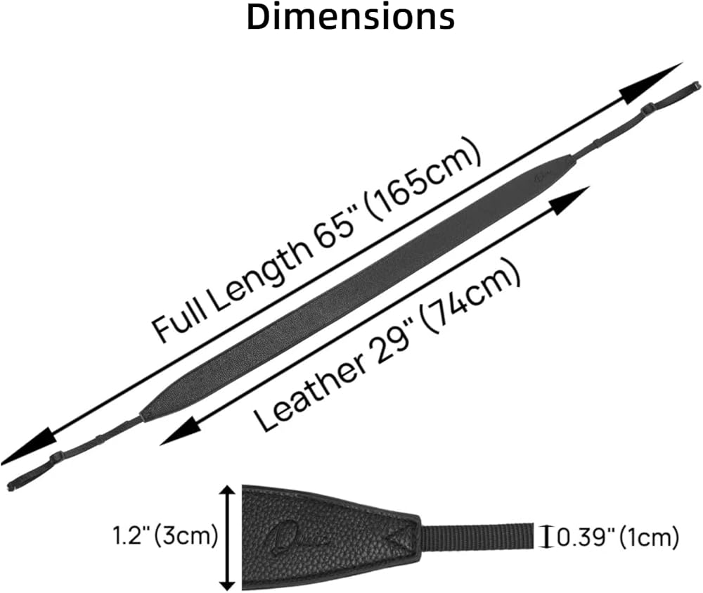 قابل للتعديل: طول قابل للتعديل مريحًا على كلا الطرفين لمعظم مستخدمي الكاميرا ، الطول الكامل: 65 بوصة (165 سم) ، طول الشريط: 29 بوصة (74 سم) ، عرض حزام: 2.3 بوصة (6 سم)
