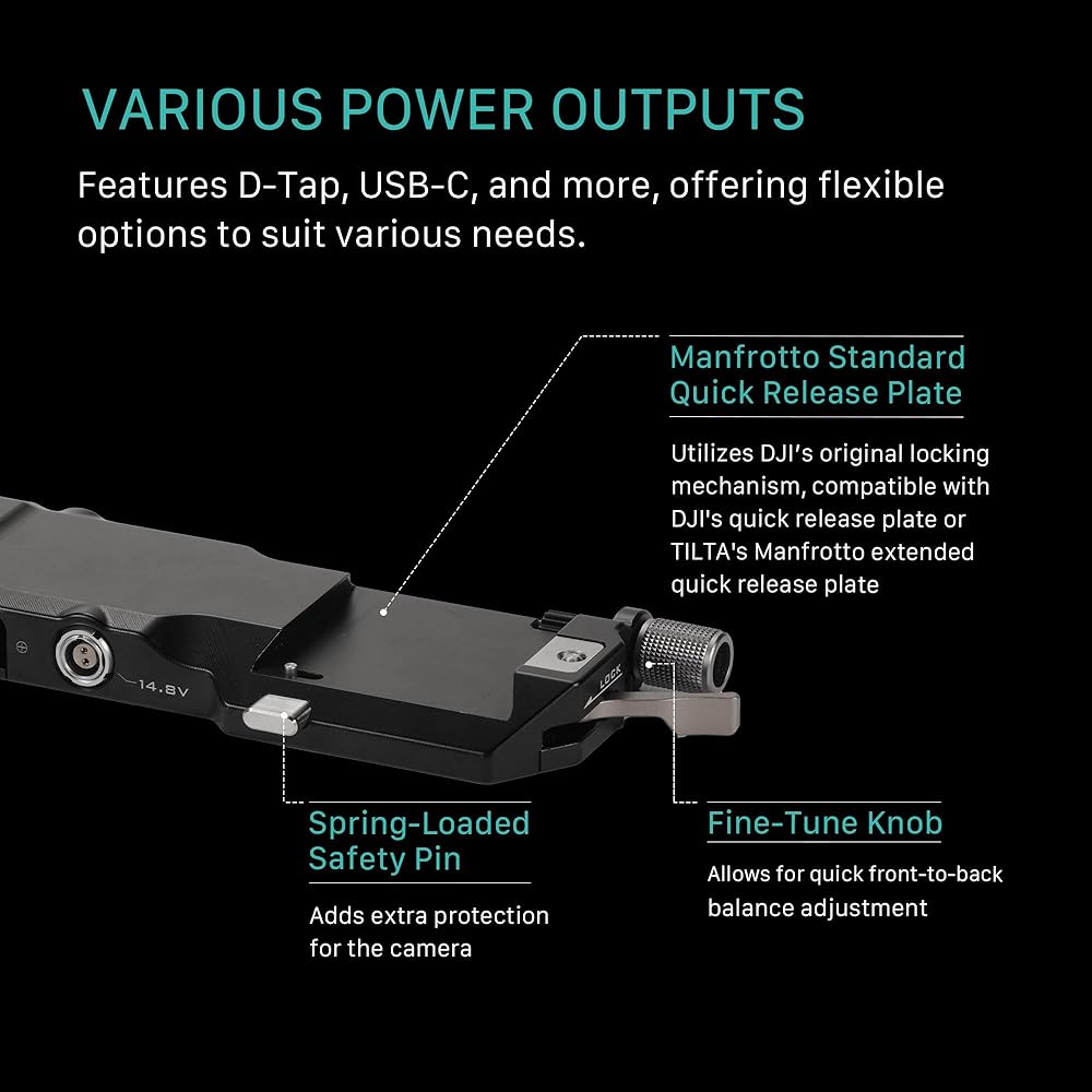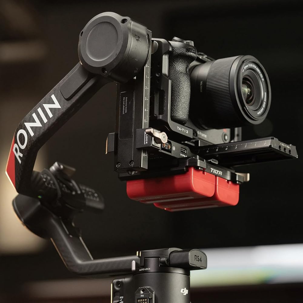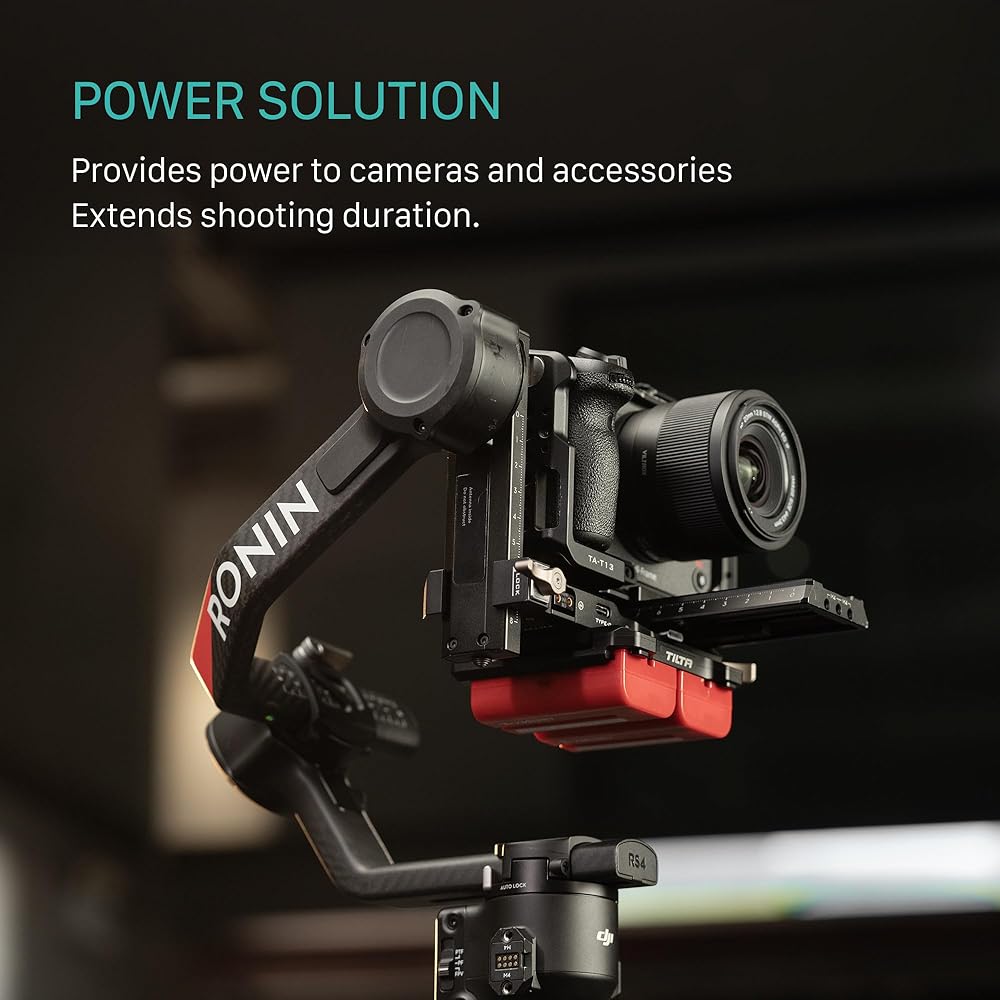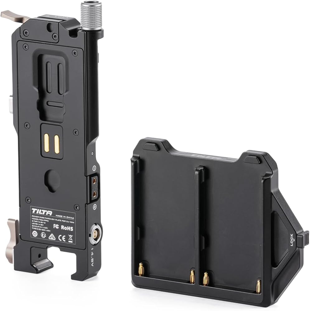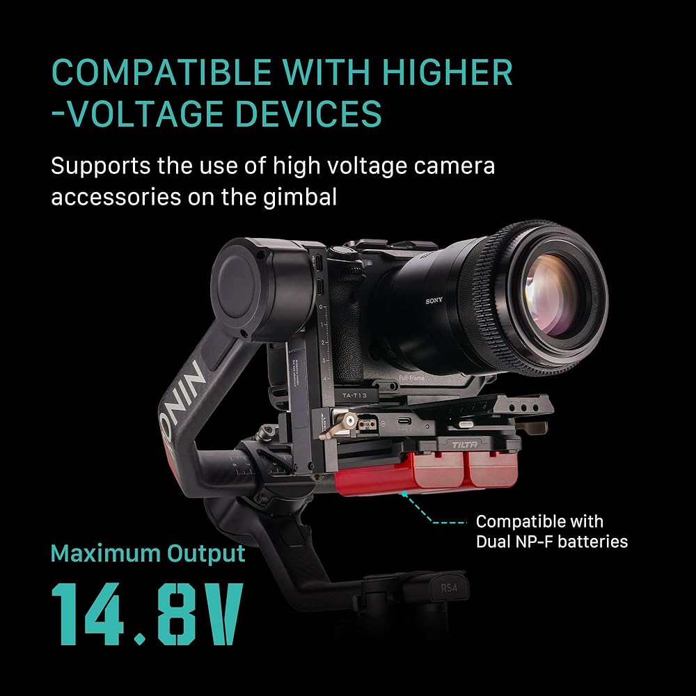 لوحة بطارية Tilta متوافقة مع DJI RS 4 Power Pass -Siregh Plate Kit - L Series | يتضمن 14.8V P-TAPS ، 2 PIN LEMO و USB-C PORT | قم بتوسيع الطاقة عبر جبل الذهب القابل للتبديل و V-Mount