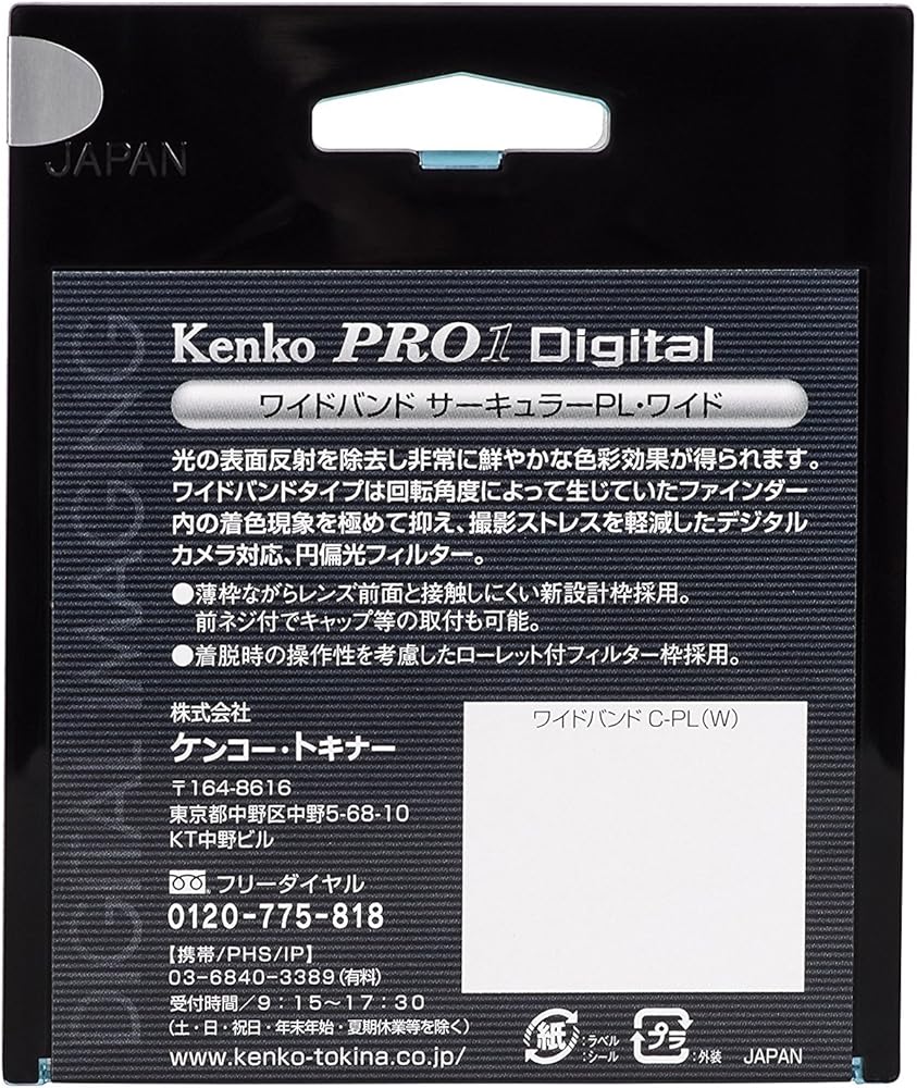 • Kenko"s C-PL filter do not affect the overall color balance of a shot.