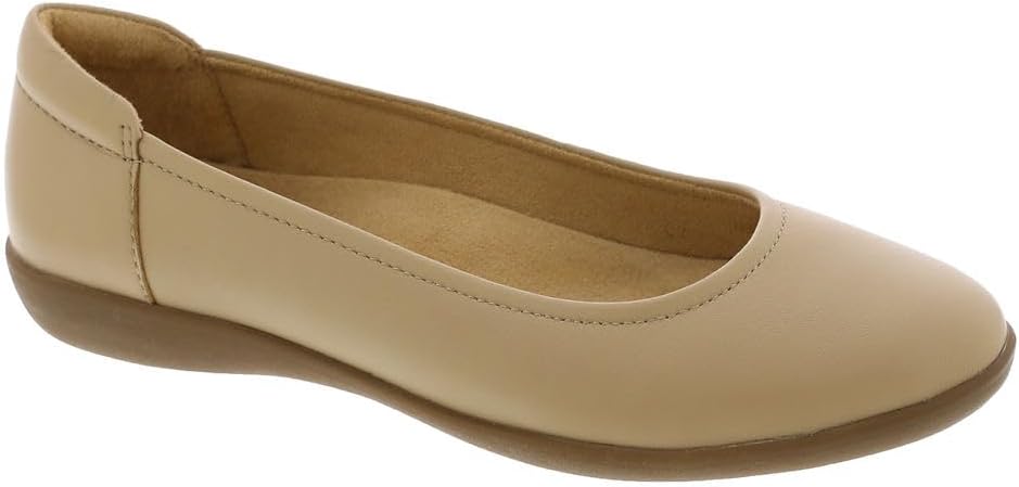 Non-stop comfort. With its traditional silhouette, padded collar and U-shaped vamp, you'll add instant polish to any business, casual, or business casual outfit with this easy-going, comfortable ballerina flat. Get there beautifully. Classic, everyday flat with a soft, padded collar. Leather, metallic leather, metallic manmade, patent manmade, fabric or manmade upper with a round toe. Smooth, quilted or perforated upper. Comfort technology. Non-slip outsole. 3/4 inch(es) heel. Consciously packaged: 100% of our shoe boxes are made of 80% recycled paper + soy-based ink. WHY YOU'LL LOVE IT: Ingenious elegant utility. Everyday styles designed for effortless mixing and comfort that is downright clever. Available in an inclusive size range of tough-to-find sizes and widths for a custom-designed fit and feel for all-day wear. The Shoe With the Beautiful Fit. Since 1927.