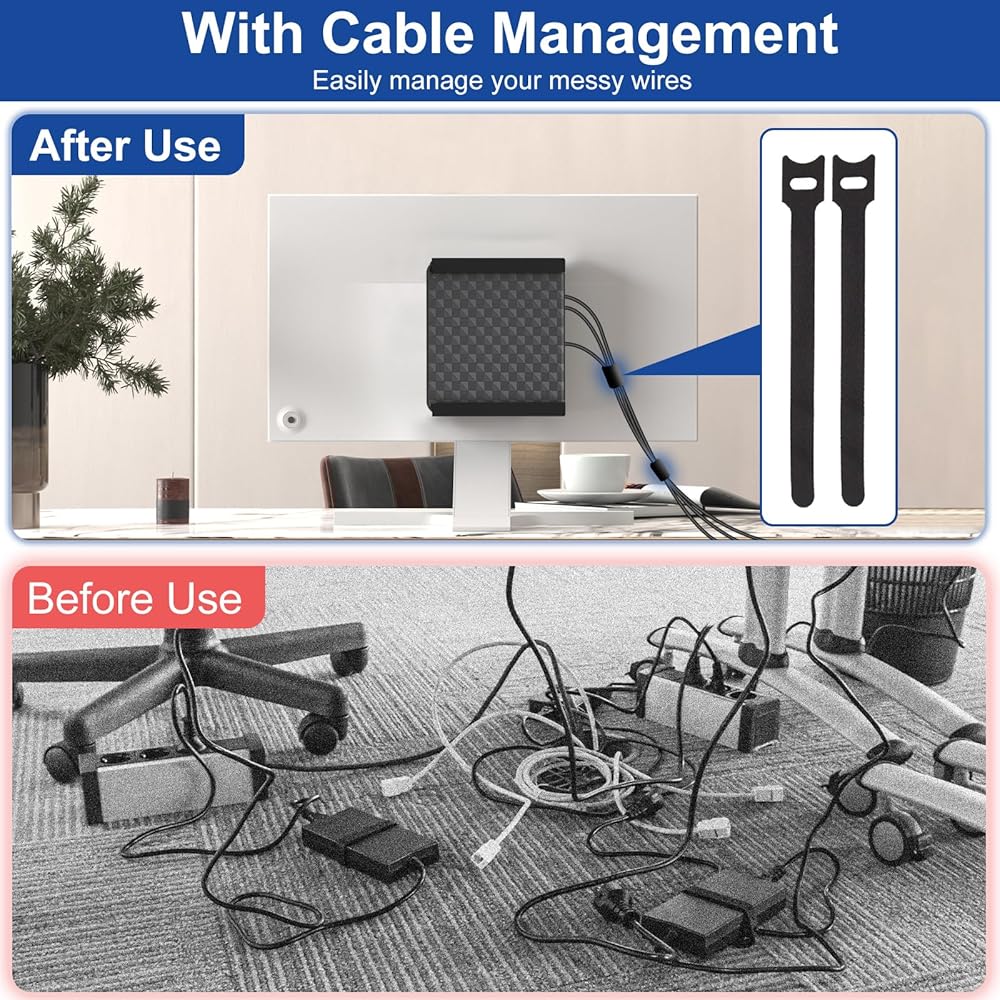 إدارة الكابلات - تتضمن اثنين من الأشرطة الفيلكرو المصممة لربط محول الطاقة بشكل آمن إلى أعلى جبل Beelink PC. الحفاظ على الكابلات الخاصة بك أنيقة ومنظمة في أي بيئة تصاعد.