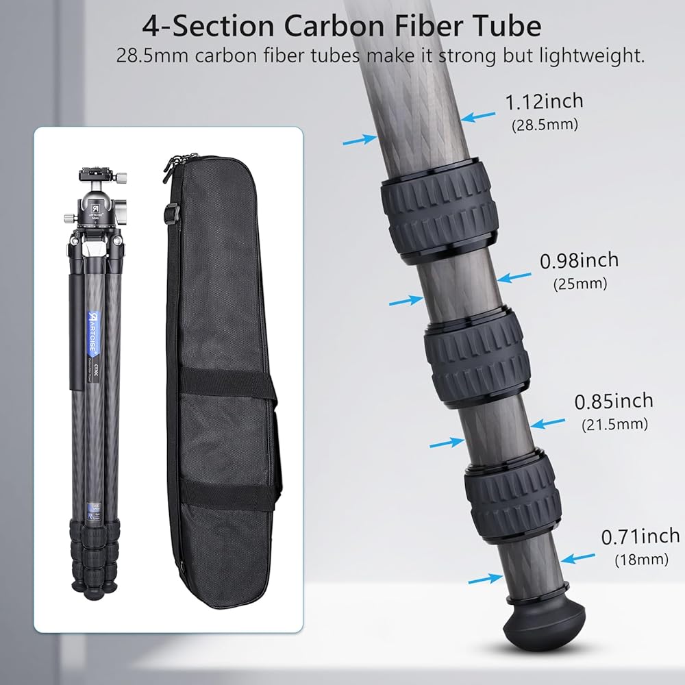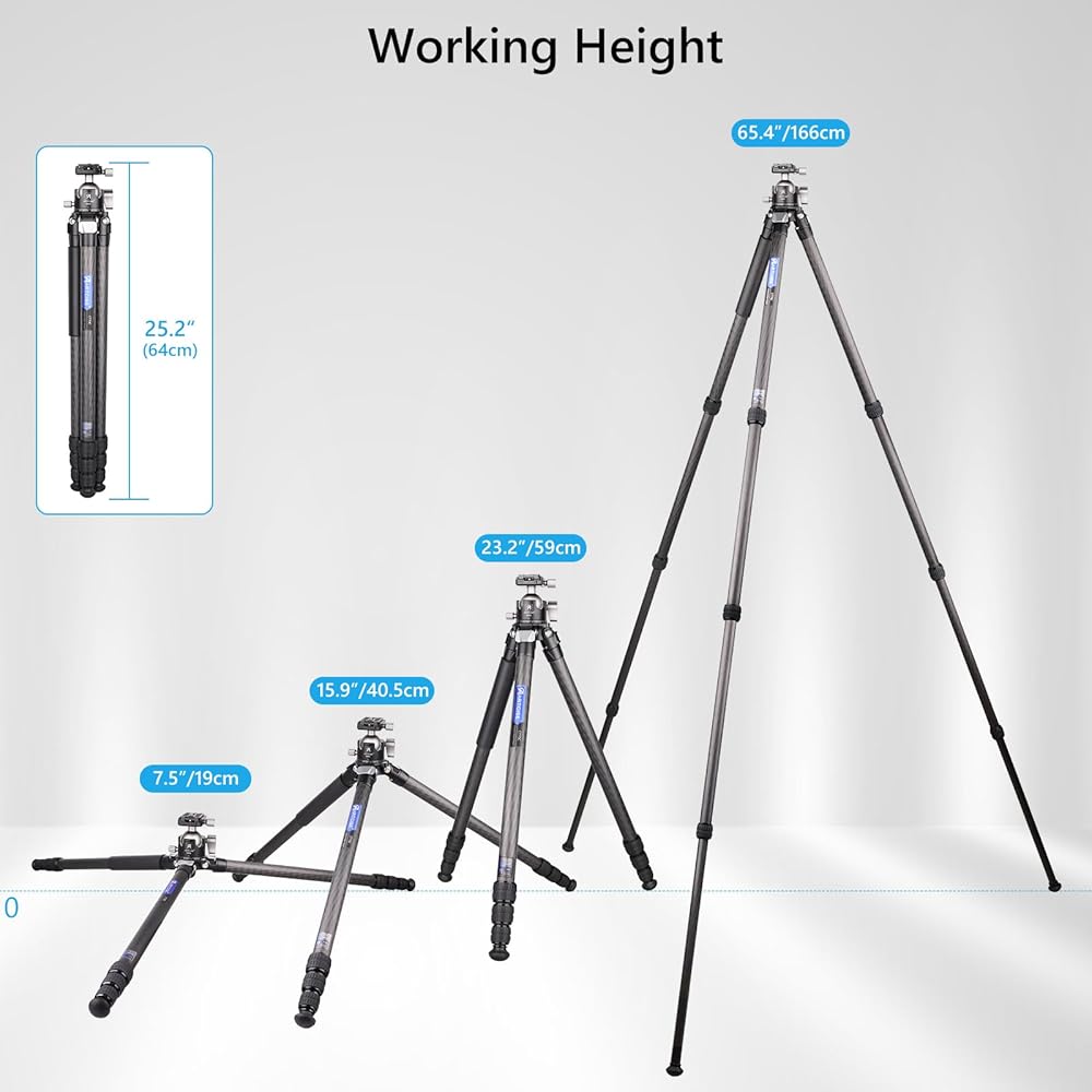 【ترايبود ألياف الكربون خفيفة الوزن مستقر】: يتكون ترايبود كاميرا السفر CT70C من مواد الكربون من الدرجة الأولى وجميع الأجزاء الرئيسية المعدنية من CNC وتكنولوجيا الأكسدة الأنودية والشركة والمستقرة. يبلغ قطر الساق من ترايبود 28.5mm-25mm-21.5mm-18mm لضمان أن يكون الحمل الأقصى 44.1 رطلاً/20 كجم ، ووزن ثلاثي القوائم: 3.78 رطل/1.71 كجم ، باستخدام الارتفاع من 7.5in/19 سم إلى 65.4 بوصة/ 166 سم.