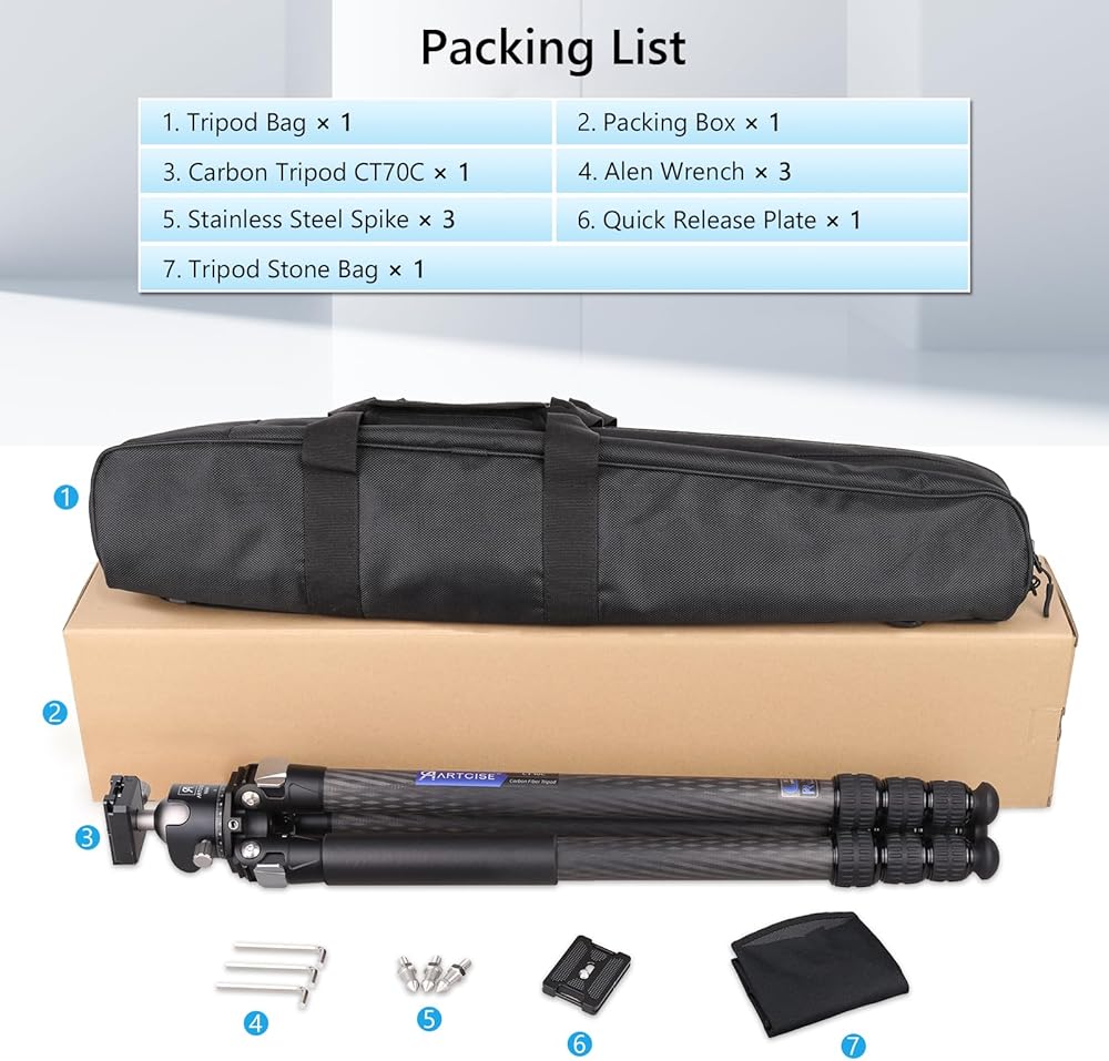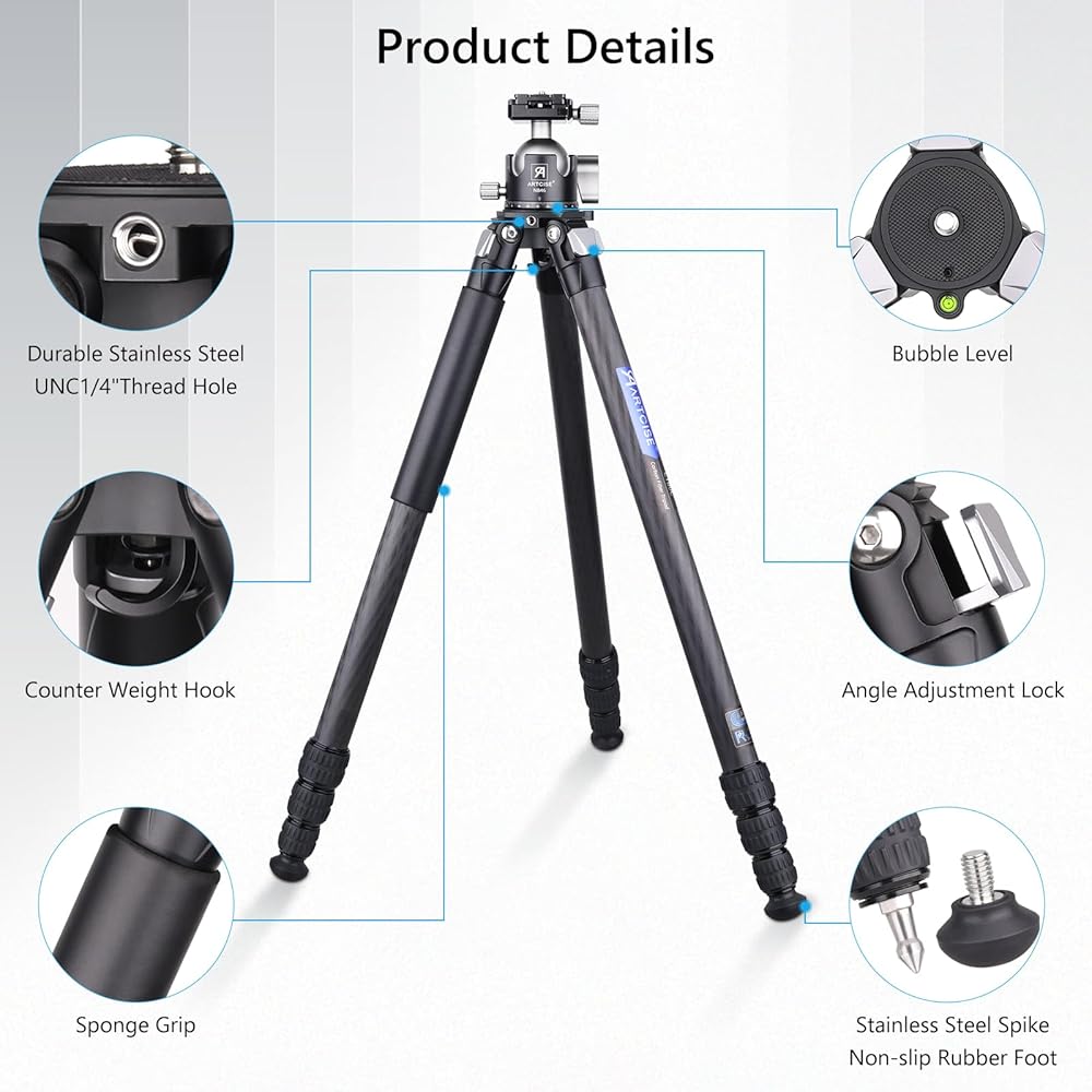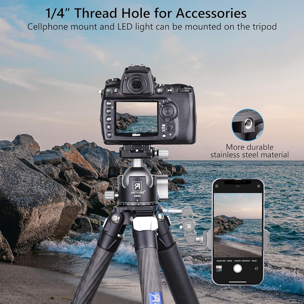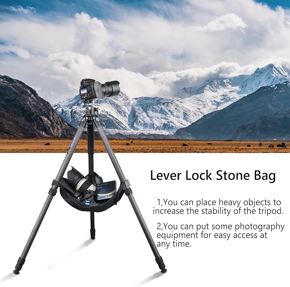 【ترايبود الكربون متعدد الوظائف】: 1⃣CASCESSORY DEOLD: 1/4 '' ثقب الملحقات الخارجية يجعل تركيب الهاتف وضوء LED يمكن تركيبه على الحامل ثلاثي القوائم إذا كان لديك ذراع سحري ومقطع هاتف. 2⃣ حجر الزاوية التي صممها علامتنا التجارية ، يمكنك وضع ملحقات التصوير الفوتوغرافي الخاص بك وهي في متناول اليد. يمكنك أيضًا وضع الحجارة في الداخل لزيادة الاستقرار. 3 - وظيفة خطاف الجاذبية.