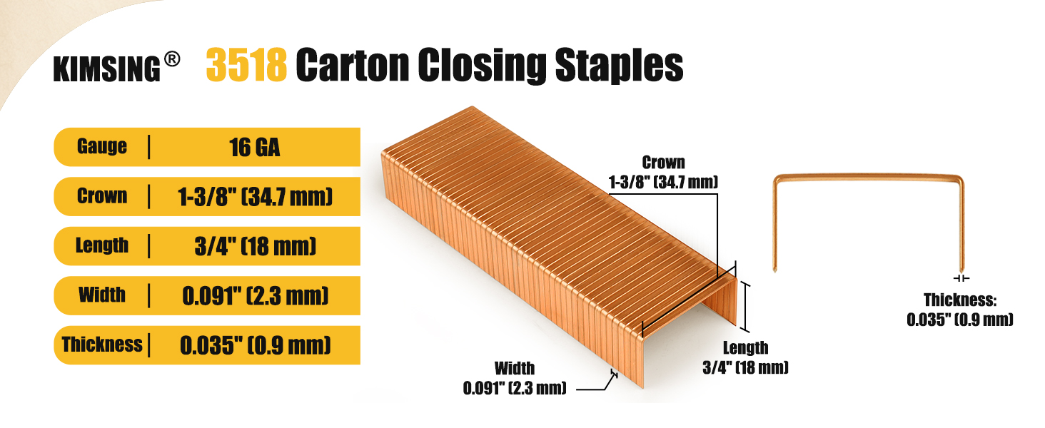 [16GA 3518 Carton Staples] التاج: 1-3/8 "(34.7 مم) ؛ طول الساق: 3/4" (18 ملم)