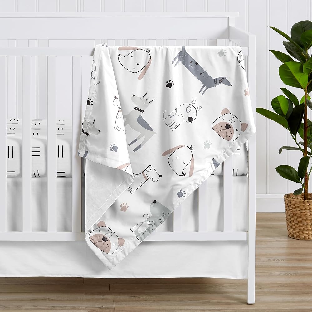 تم تصميم بطانية أمان الأطفال هذه باستخدام كلب ألياف مائية باللون الرمادي والأزرق بالألوان المائية.