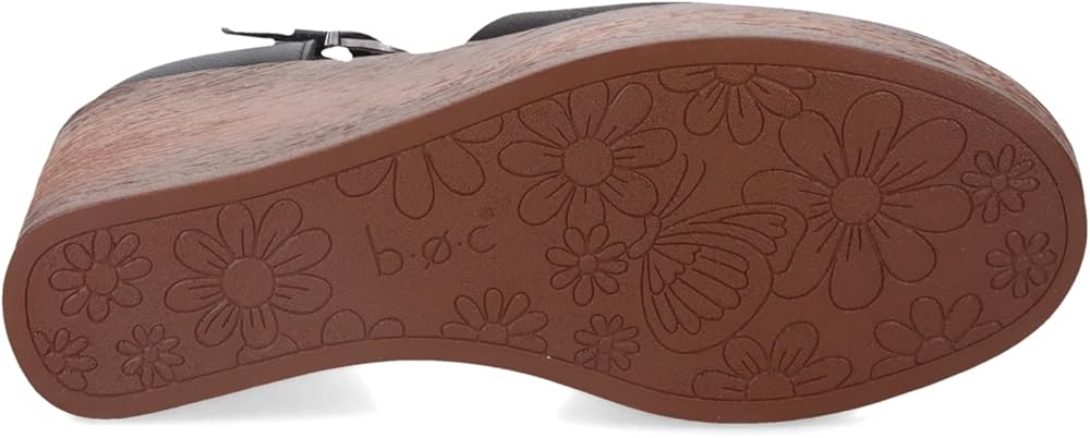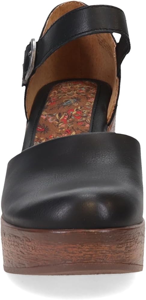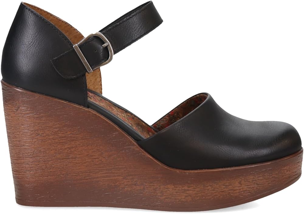 Make a fashion statement in this 70's inspired platform clog style! This style features a trendy wood look midsole/heel but without the added weight. Easy care manmade uppers in a platform clog style with closed back for a secure fitPlush cushioned footbedAdjustable strap for a secure fitWoodgrain look platform midsole and high heelSynthetic outsole3.5-Inch wedge heel with a 1.5-inch platform