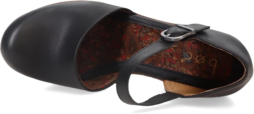 Easy care manmade uppers in a platform clog style with closed back for a secure fit