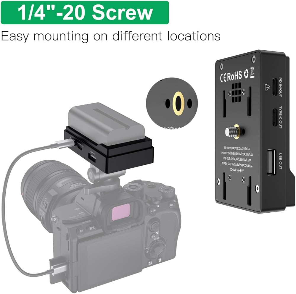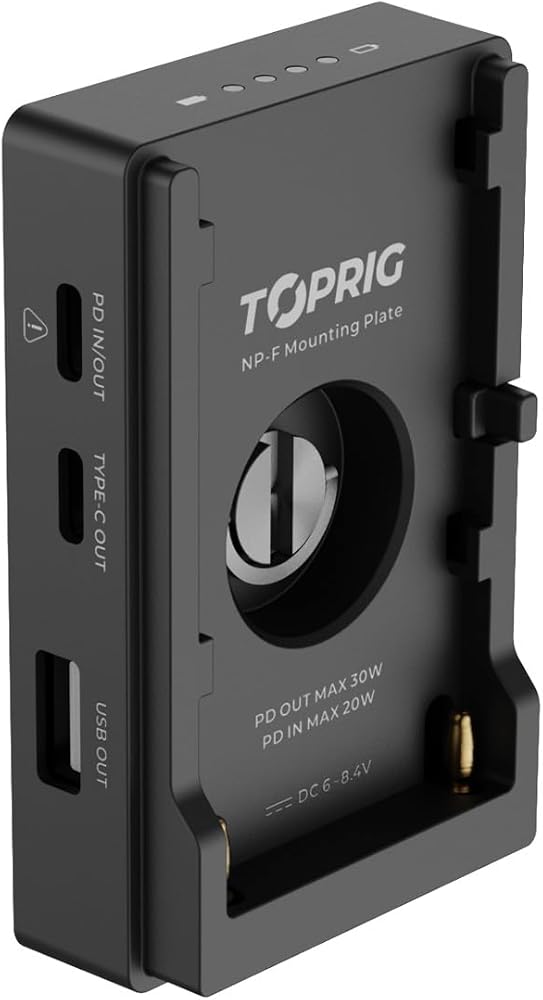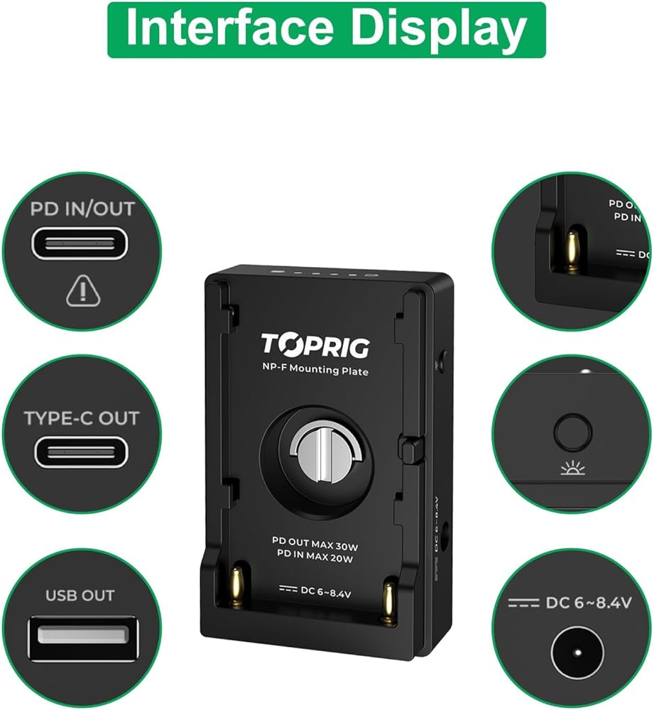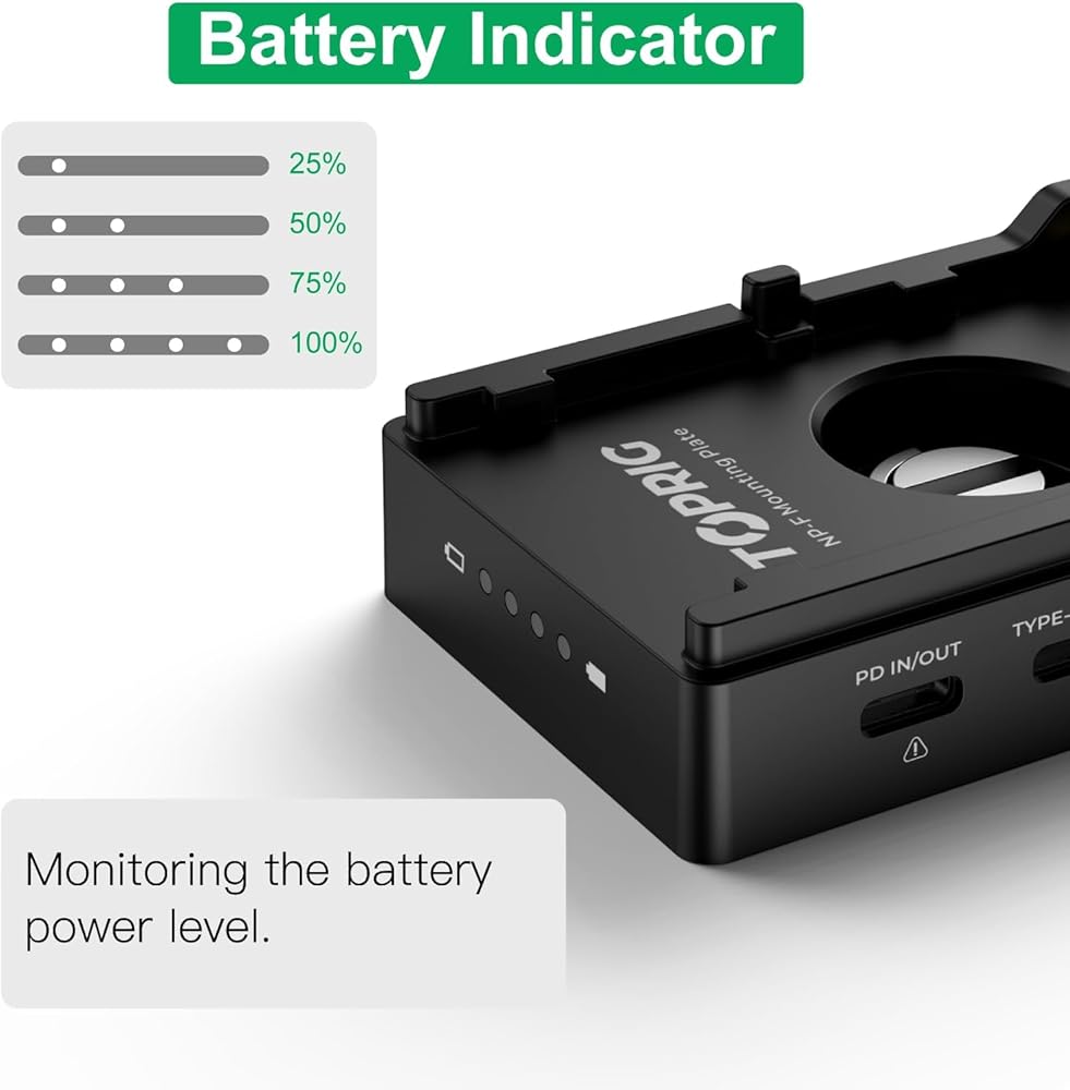 لوحة تركيب محول بطارية Accsoon Toprig NP-F مع مؤشر بطارية LED، حامل لولبي 1/4 بوصة مع مخرج USB-C&DC، متوافق مع Sony NP-F 550/750/970 وبطاريات الطرف الثالث، شحن سريع PD20W