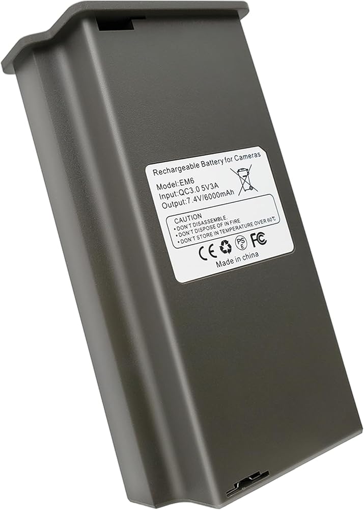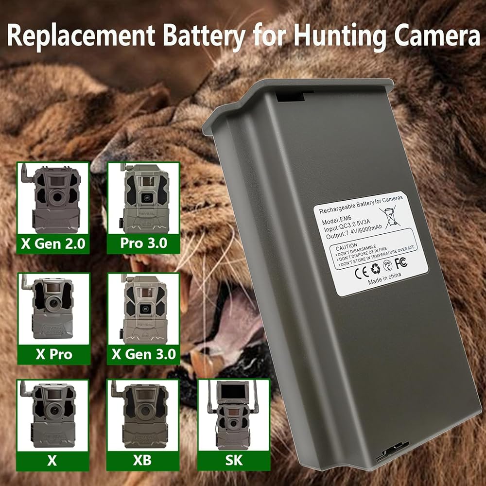 كاميرا الصيد EM6 قابلة لإعادة الشحن حزمة بطارية ليثيوم ليثيوم 7.4v 6000mAh متوافقة مع الكاميرا الخلوية للركوب X ، X Pro ، Pro 3.0 ، X Gen 2.0 ، X Gen 3.0 ، XB ، SK (تضمين كبل النوع C)