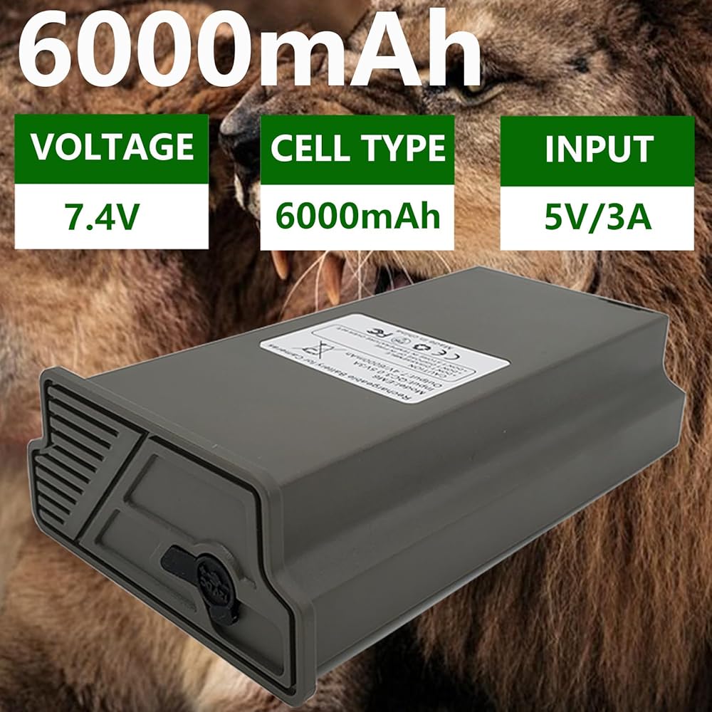 【طاقة طويلة الأمد لكاميرا Trail Camera X】 جهد الإخراج: 7.4 فولت ، السعة: 6000 مللي أمبير في الساعة ، والبطارية عالية السعة والبطارية تسمح لكاميرا الصيد الخاصة بك بالعمل لفترة أطول دون استبدال البطارية المتكررة ، حتى تتمكن من التقاط اللقطة المثالية في الحقل 【الطقس -بطارية مقاومة للصيد كاميرا X Pro】 يمكن أن تعمل بطارية ليثيوم كاميرا الصيد القابلة لإعادة الشحن بشكل ثابت في الظروف الجوية القاسية من -68 درجة فهرنهايت (-20 درجة مئوية) إلى 113 درجة فهرنه كاميرات