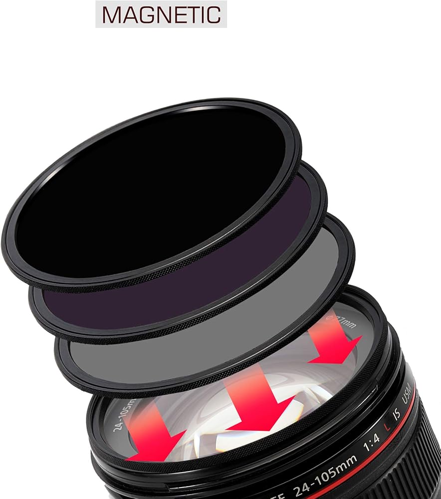 • ► في محول نظام خيط المسمار التقليدي ، مرشح CPL ، خريج ناعم ND0.9 3 إيقاف مرشح الإيقاف و ND1000 10 مرشح كثافة محايدة وقبعة العدسة المغناطيسية