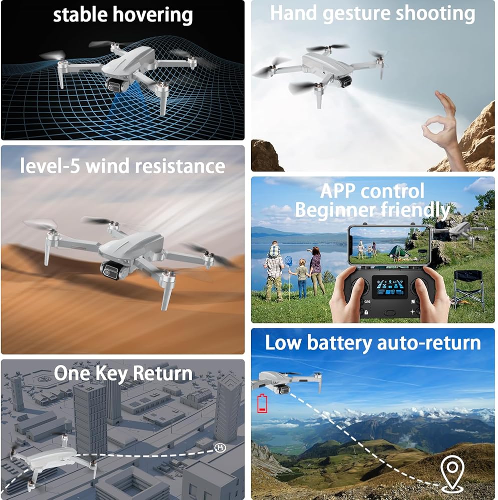 【GPS Auto Return】: تم تجهيز طائرة GPS بدون طيار بمجموعة متنوعة من وظائف الإرجاع ، وتسجيل موضع البداية تلقائيًا قبل الإقلاع ، عند مواجهة البطارية المنخفضة أو خارج المسافة ، يمكنك العودة تلقائيًا ، ولكن أيضًا من خلال التحكم عن بُعد مفتاحًا للعودة .