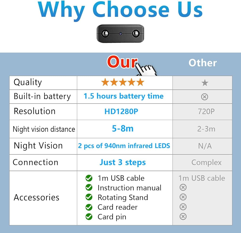 ️ 【لا يمكن الحصول على أي】 - xdwifi pro هو أحدث تصميم لعام 2023. الكاميرا ليست سوى حجم العملة المعدنية ، الحجم: 1.57 × 1.18 × 5 ، وسهلة حملها ، يمكنك عرض الفيديو المباشر عن بُعد من التطبيق من أي مكان في العالم. ككاميرا أمنية ، راقب عن كثب منزلك أو مكتبك.