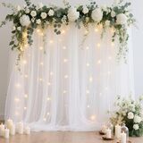 ستارة خلفية من التول الأبيض مع سلسلة أضواء بطول 10أقدام × 8أقدام ستائر خلفية من التول الشفاف لحفلات الزفاف وأعياد الميلاد وديكورات الخلفية لالتقاط الصور (لوحتان 5 × 8أقدام)