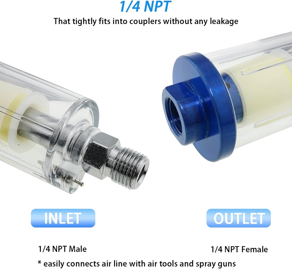• This water and oil filter effectively traps water, oil and dust. Reduces disposal of worn paint spray guns and other air tools, extending the life of air tools.