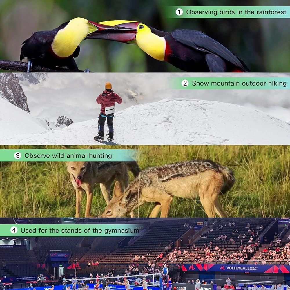 • 【التركيز السلس والعيون القابلة للتعديل للراحة】 استمتع بتجربة عرض قابلة للتخصيص مع التركيز السهل على التركيز والعيون الملتوية ، التي تلبي احتياجات كل من Eyeglass وغير المرهدين. توفر هذه المناظير عالية الطاقة للبالغين آلية تركيز سلسة ، وضمان تعديلات سريعة ودقيقة-مثالية للطيور ، والمراقبة التكتيكية ، ومغامرات السفر لمسافات طويلة.