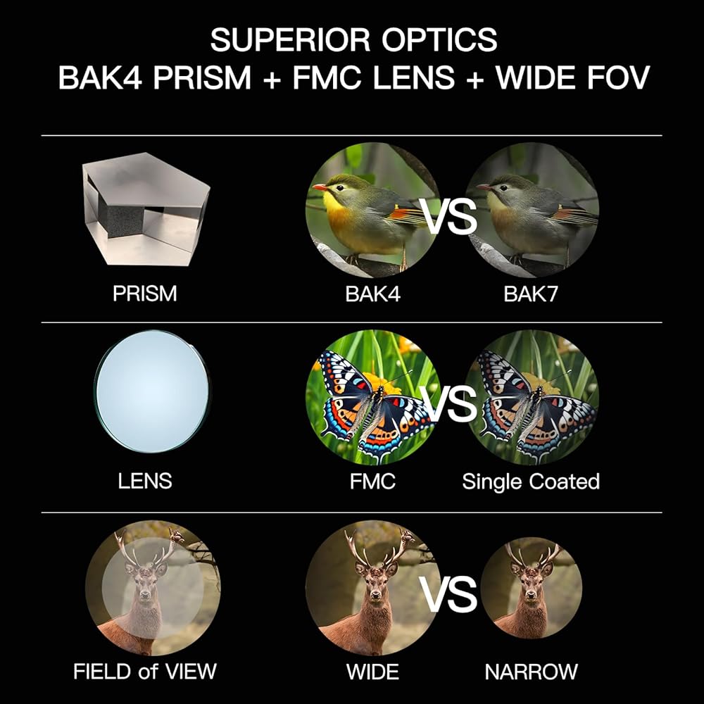 • 【Premium Ed Glass & Bak4 Prisms من أجل الوضوح المحسّن】 مزودًا بتشتت منخفض (ED) من المنشورات BAK4 عالية الجودة ، فإن هذه المناظير تقلل من التشوه وتعزز الحدة. يضمن النظام البصري المتقدم صورًا واضحة وعالية التباين ، مما يجعلها مثالية للطيور ومراقبة الحياة البرية والمشاهدة بعيدة المدى في كل من ظروف الضوء المشرقة والمنخفضة.