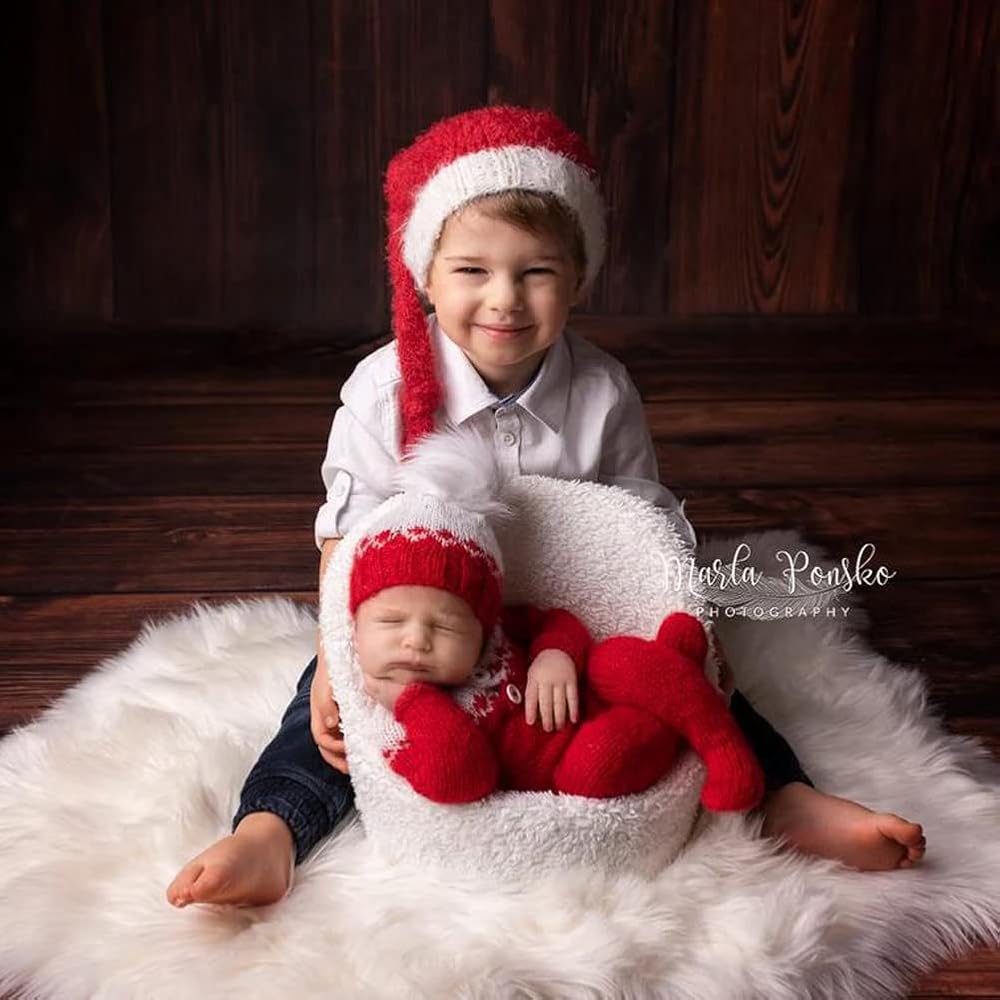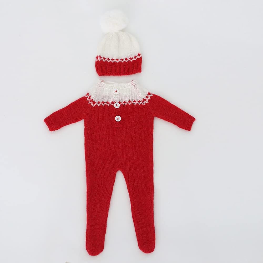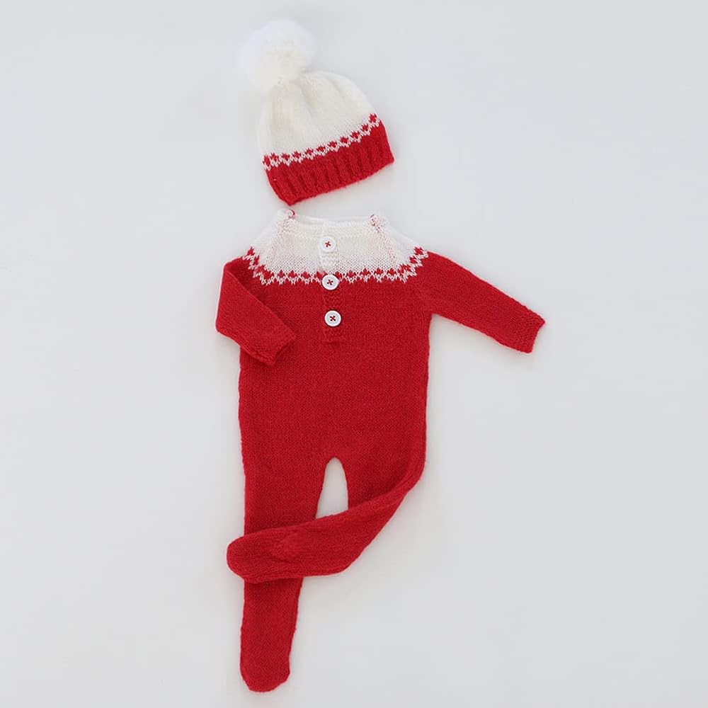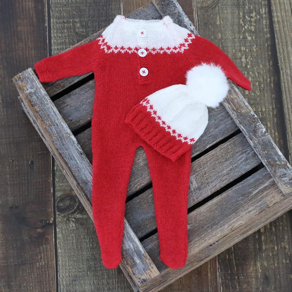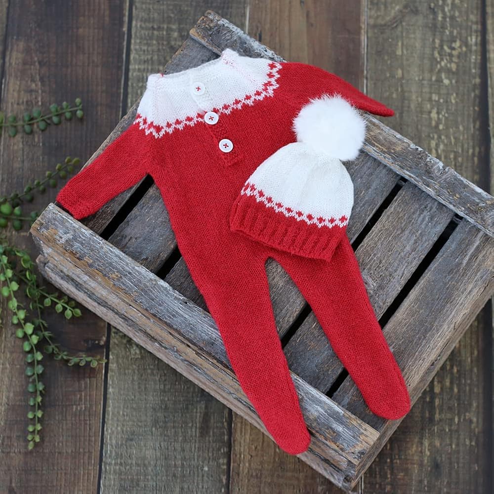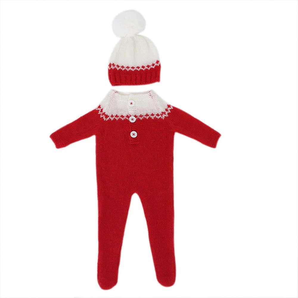Ikasus حديثي الولادة التصوير الفوتوغرافي Prop infants baby photoshoot Props Boys Girls Outfits عيد الميلاد موضوع Red Mohair Mohair Hat Bonnet و Romper Bodysuit مجموعات تبادل لاطلاق النار على 0-3 أشهر من الفتيات الصغيرات