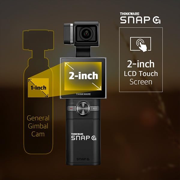 Thinkware Snap-G Plus Vlogging Camera | كاميرا فيديو جيمبال 3 محاور محلية لـ YouTube | 4K كاميرا ل Vlogging | 60 إطارًا في الثانية ، زاوية واسعة ، شاشة لمس شاشة LCD ، بطارية قابلة للاستبدال ، مسار WiFi AI