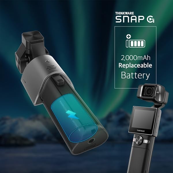 The THINKWARE SNAP-G Plus is the ultimate content creator camera, designed for vloggers and YouTubers. This blogging camera offers the stability of a 3-axis gimbal paired with a 4K camera for video recording capabilities. The 2-inch LCD touchscreen, replaceable battery, and intuitive joystick controls make it an all-in-one solution for high-quality, dynamic videos. Whether you're recording with this gimbal camera at home or on the move, the SNAP-G V2 ensures professional results every time. It's the perfect companion for anyone looking to elevate their content creation with a versatile and portable camera.