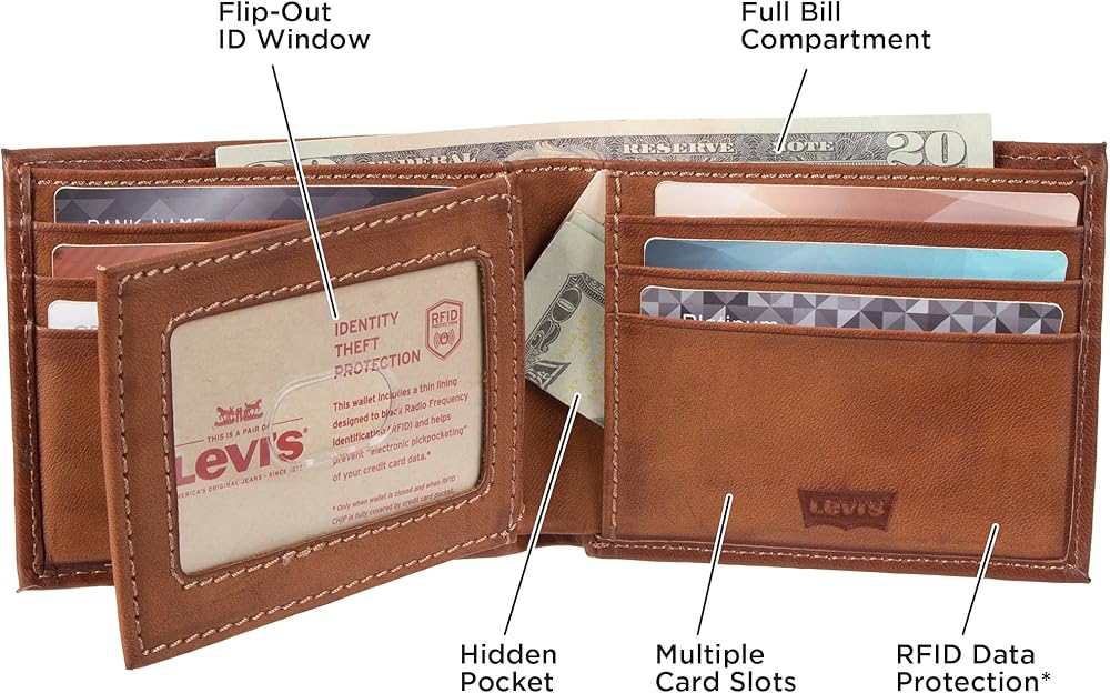 ليفايس تم تصميم محفظة تحديد الهوية بموجات الراديو لحماية متعلقاتك من أي سرقة للهوية، بالإضافة إلى منحك محفظة رائعة وكاجوال تحتوي على كل سعة التخزين التي تحتاجها.