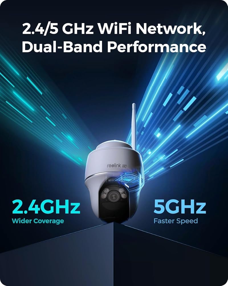 التثبيت الخالي من الأسلاك و Wi-Fi مزدوج النطاق: يسمح نظام الكاميرا اللاسلكي بإعداد سريع وسهل دون متاعب الأسلاك. مع كلا 2.4 جيجا هرتز للنطاق الممتد و 5 جيجا هرتز لسرعات أسرع ، يضمن النظام اتصالًا قويًا ومستقرًا لكاميرات أمان منزلك ، في الداخل والخارج ، بغض النظر عن تخطيط منزلك.