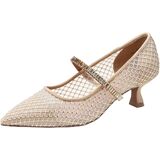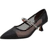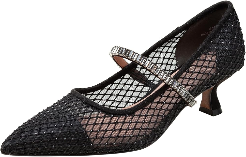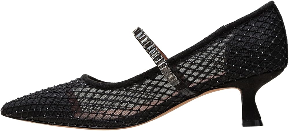 Pretty And Elegant Pointed Toe Sculpted Kitten Heel Pumps With A Crystal Adorned Elasticized Mary Jane Strap Are The Perfect Finish To Your Festive Party Dress.