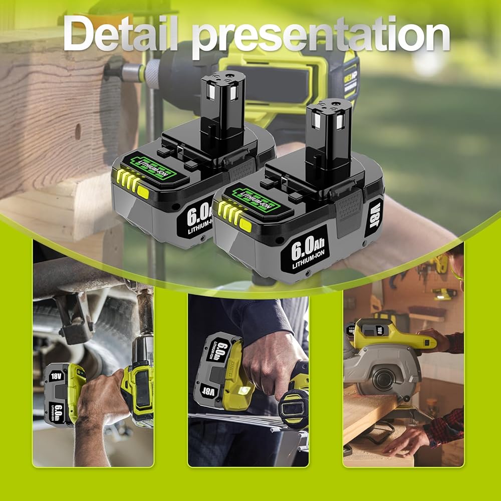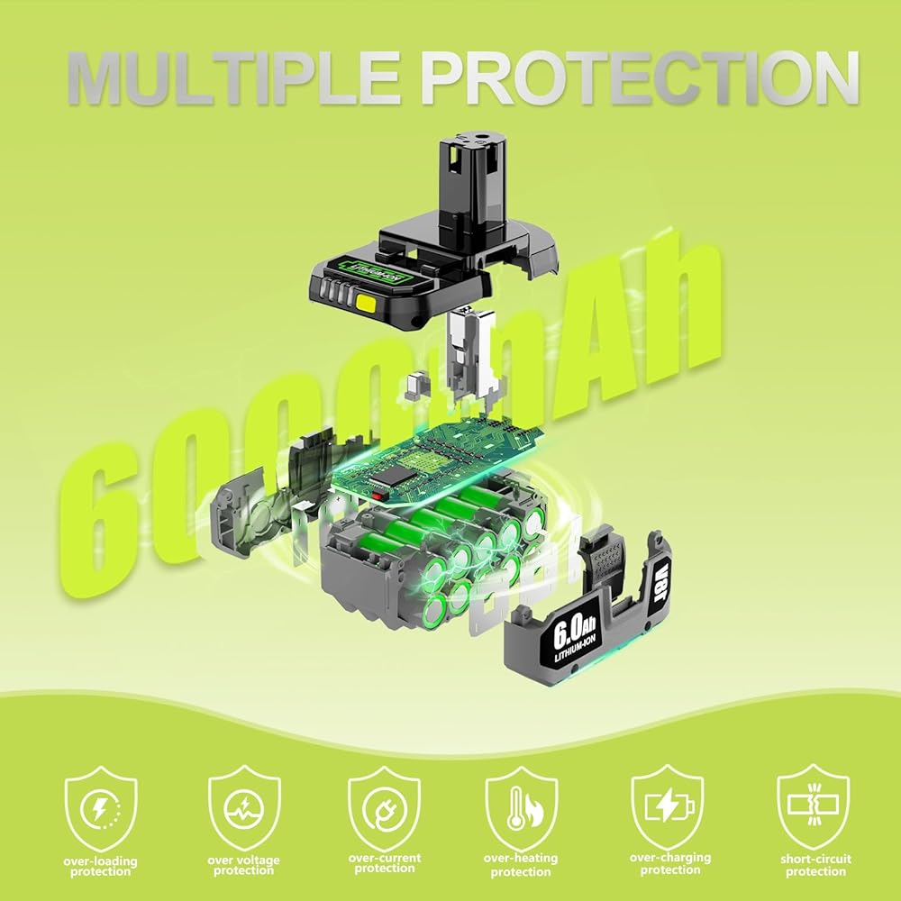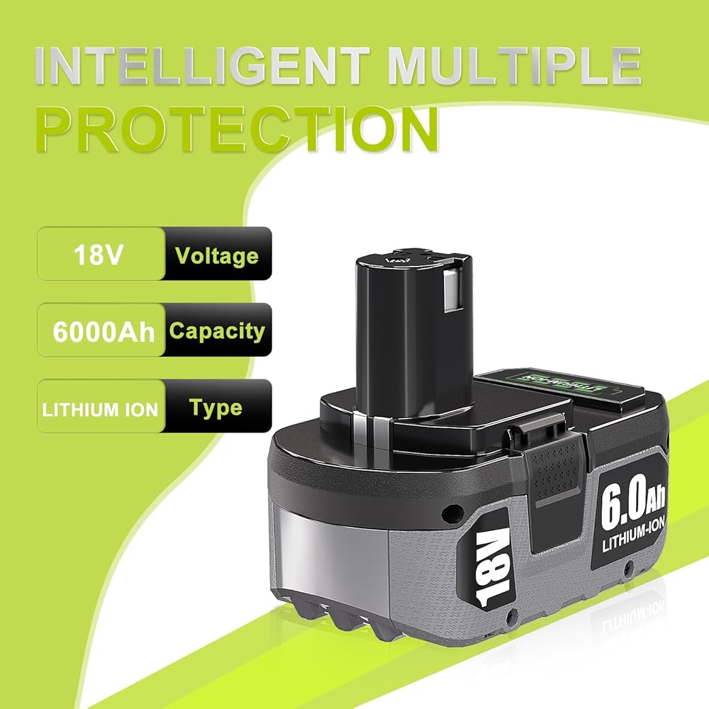 • بطارية 6.0AH عالية السعة: بسعة 6.0AH ، توفر هذه البطارية وقت تشغيل ممتد لأدوات الطاقة اللاسلكية Ryobi ، مما يتيح لك العمل لفترة أطول دون إعادة شحن متكررة.