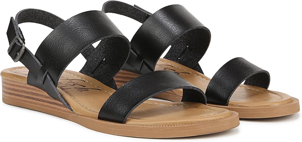 Make the Arcadia Sandal from Blowfish Malibu yours. It features a faux-leather upper with adjustable heel strap for a comfortable fit and a low wedge heel for just a hint of height. Faux-leather upper. Slip on entry. Adjustable heel strap. Lightweight. 1 inch wedge heel.