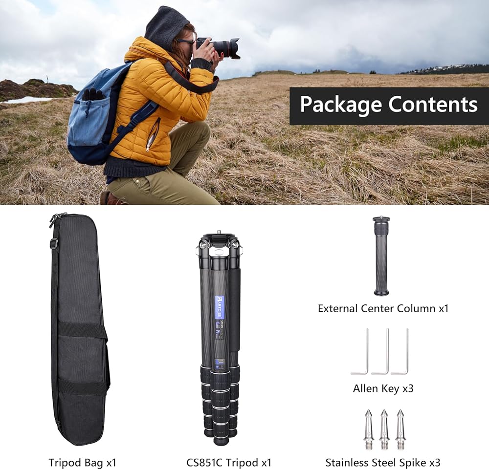 【What you get】 1*Carbon tripod, 1*Tripod Bag, 1*Short center column. We promise 12 months After-sales service from the date of purchase. If you have any problems within the quality guarantee period, we will refund or resend. we are always ready to hear your voice (reply within 24hrs)