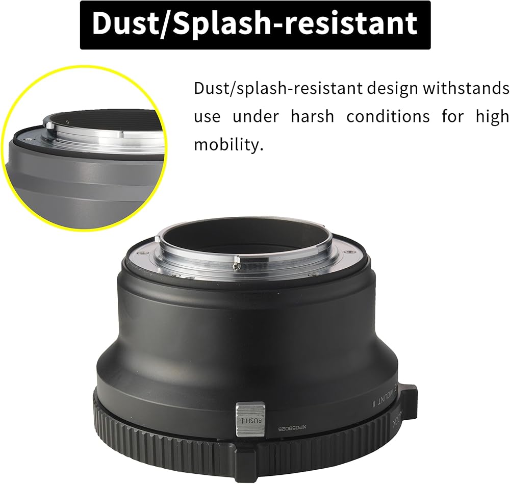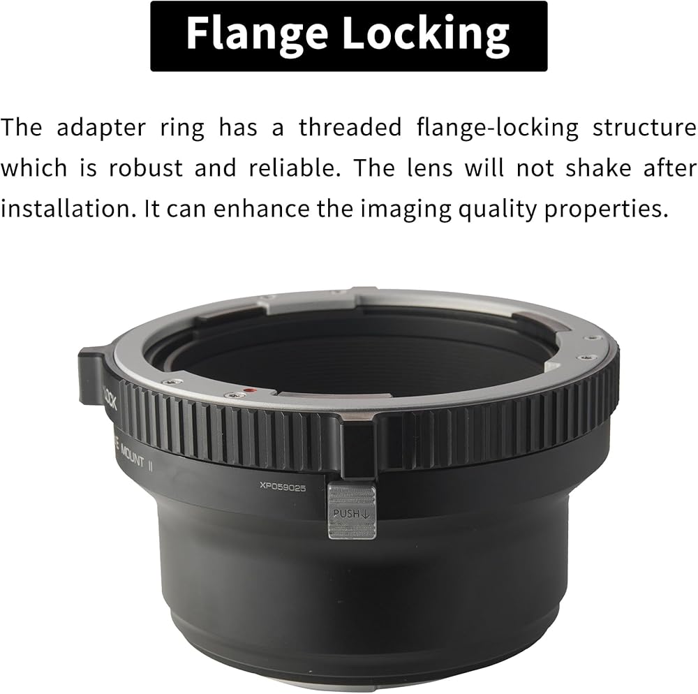 - قفل الحافة: يحتوي حلقة المحول على بنية قفل الحافة الخيوط وهو قوي وموثوق. لن تهتز العدسة بعد التثبيت