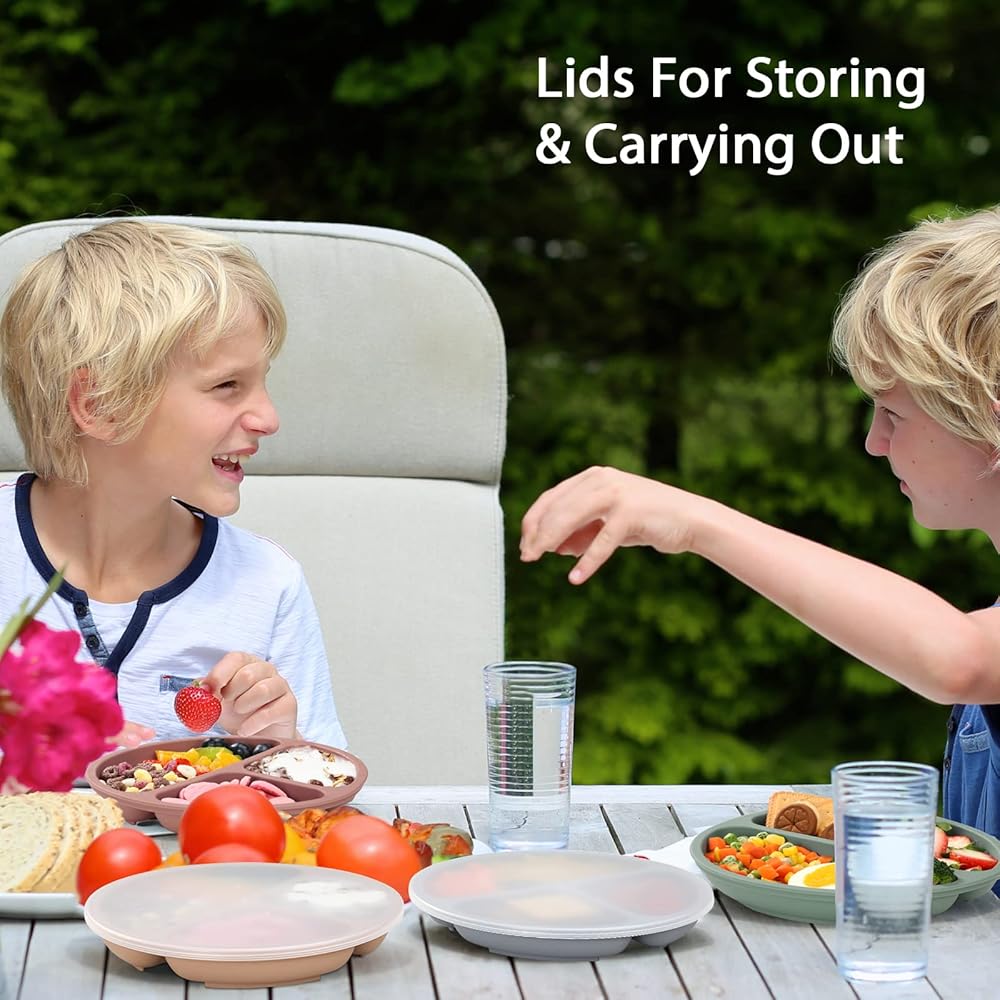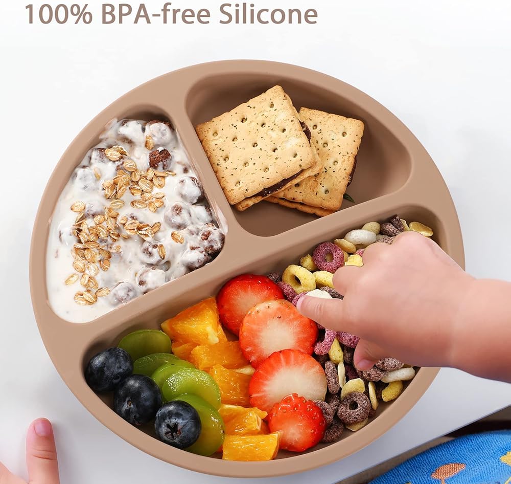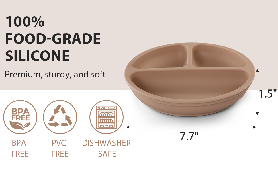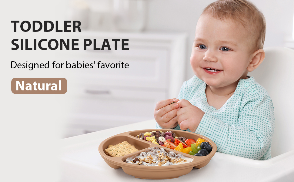 لوحة شفط Vitever مع غطاء للطفل ، Baby & Kid ، سيليكون بنسبة 100 ٪ من الدرجة الغذائية ، والتصميم المقسم ، والميكروويف وغسالة الصحون آمنة - طبيعي