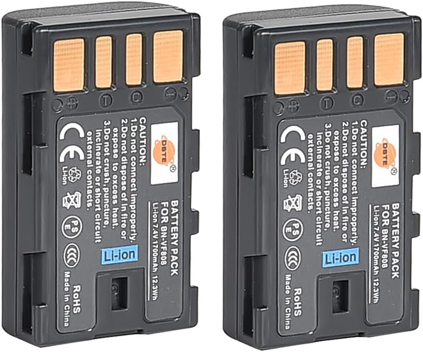 DSTE 2x BN-VF808 VF808 BN-VF808U Battery + DC36 شاحن متوافق مع Z-MG130 GZ-MG131 GZ-MG132 GZ-MG133 GZ-MG134 GZ-MG135 GZ-MG148 GZ-MG155 GZ-MG17 GZ-MG17 GZ-MG17 MG255 GZ-MG575 GZ-HD7
