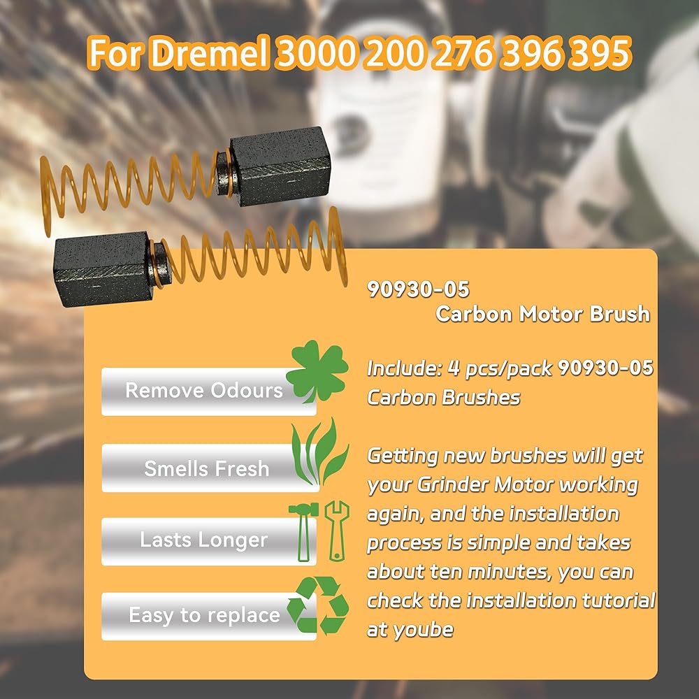 90930-05 Carbon Motor Brushes for Dremel 3000 200 276 396 395 2610009829 Replacement Part (4 Pack)