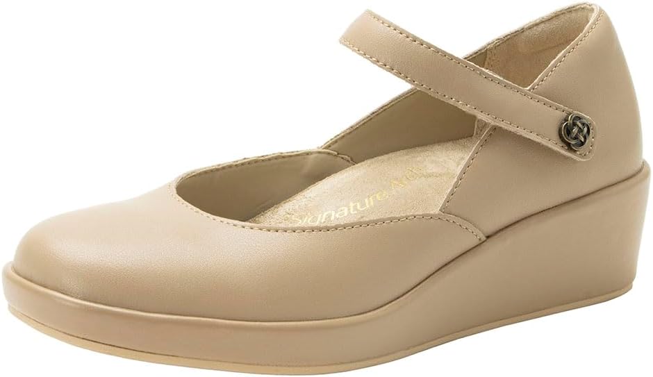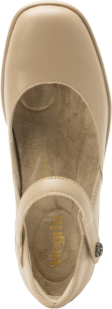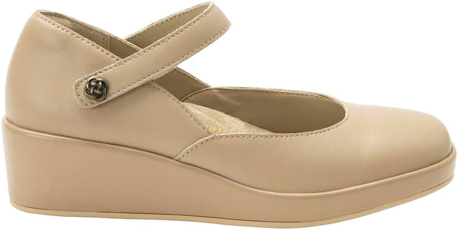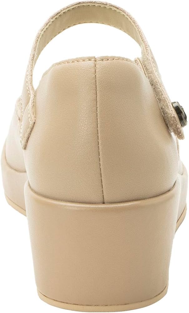 The Alegria Hayes elevates your modern look. Featuring premium leather uppers and an adjustable strap with a decorative button closure, this shoe ensures a secure and custom fit. Built on the advanced Tri-Form wedge outsole from Alegria, the Hayes delivers exceptional support, stability, and shock absorption for all-day comfort. The removable dual-density Signature Arch footbed promotes foot health, making this versatile style perfect for work or casual outings. Featuring adjustable strap with decorative button closure, and protective heel cup for added stability. Leather lining, faux fur insole. Polyurethane outsole.