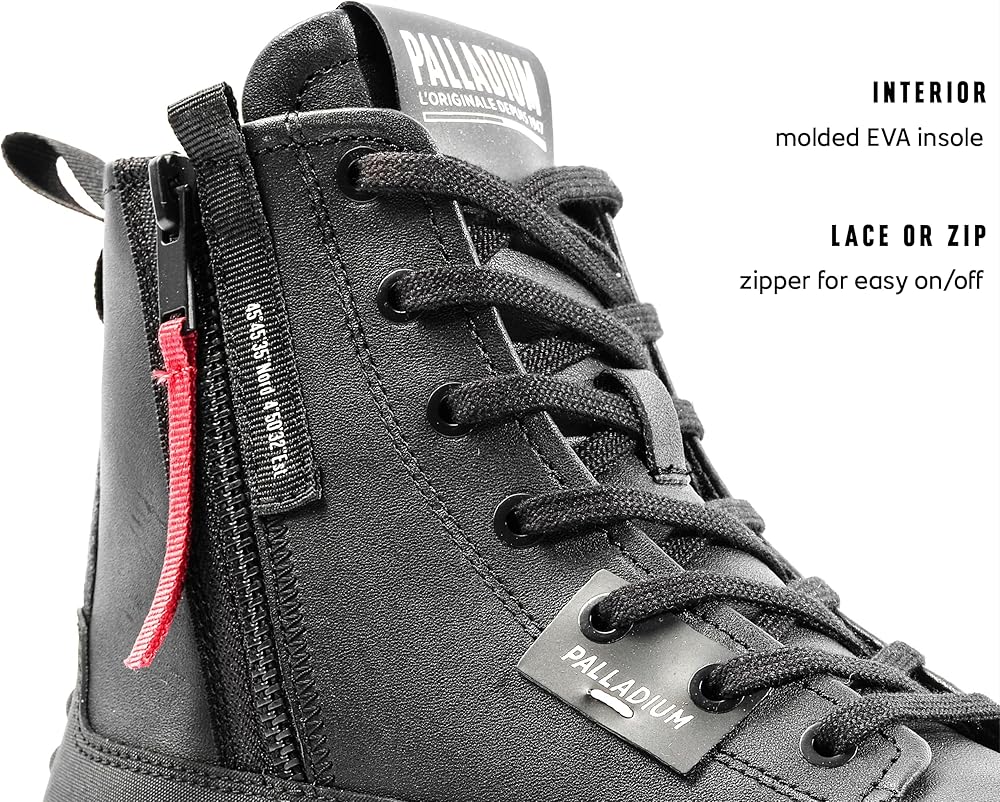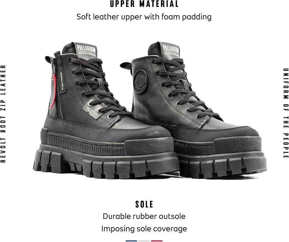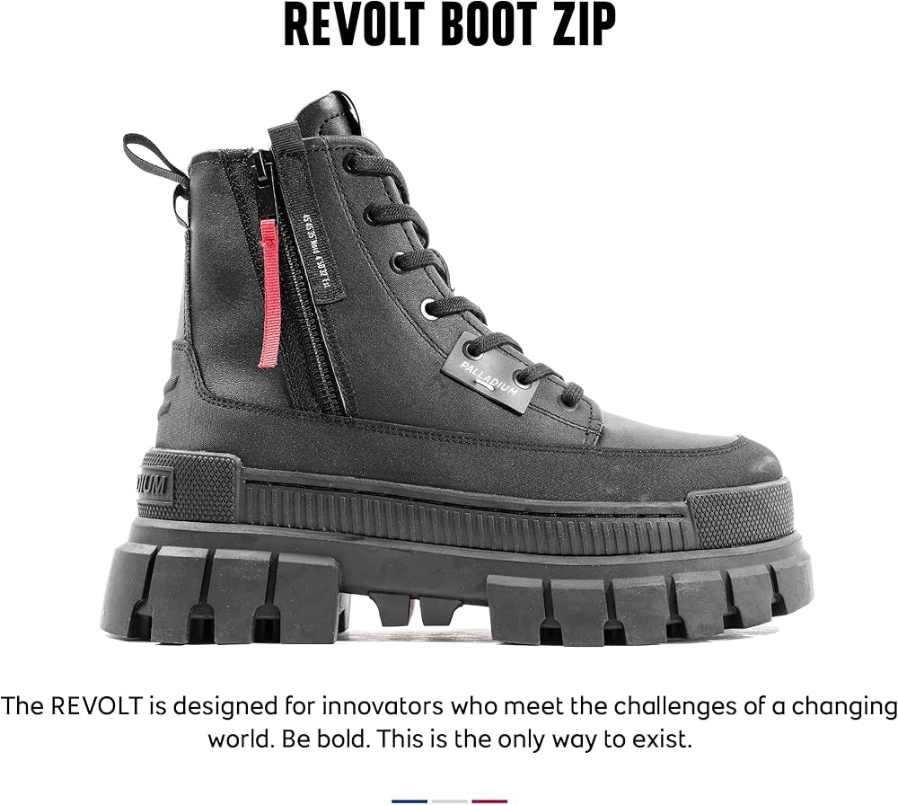 Step into the future with the Revolt Boot zip Lth – crafted for visionary innovators who embrace the challenges of a changing world. Featuring an imposing sole and a high upper made of luxurious soft leather, these boots exude a powerful and sophisticated presence. Embrace the essence of streetwear fashion with Overlab signature details and original brand references, completing the unmistakable Palladium look. Unleash your creative spirit, challenge the status quo, and navigate the changing landscape with confidence and style. These boots are the perfect fusion of fashion-forward design and practicality, ready to accompany you on any adventure that lies ahead.