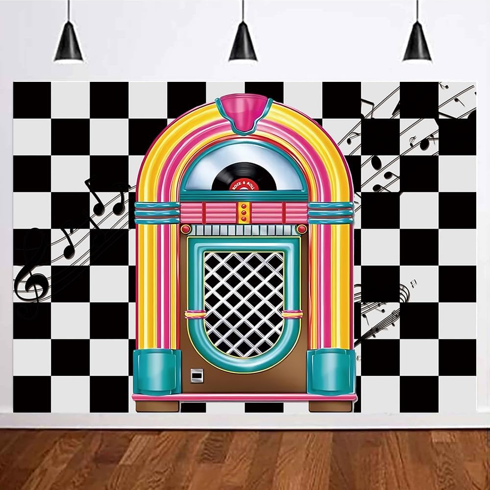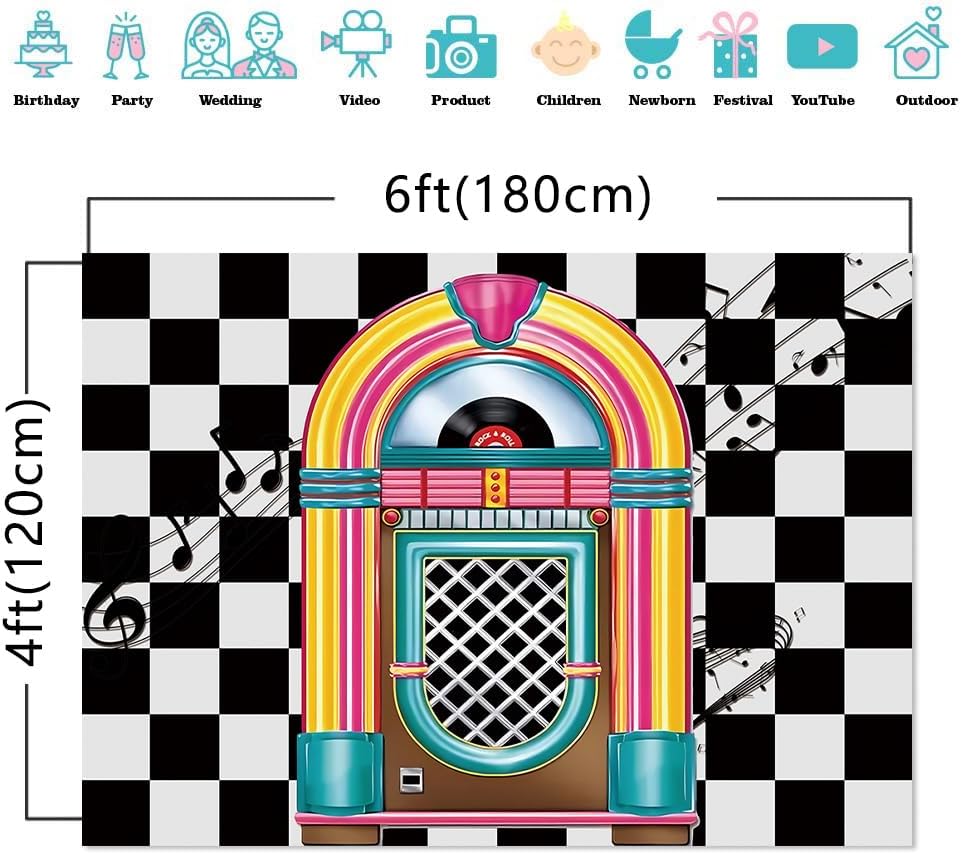 عودة HQM إلى الخمسينيات من عمر الجورب تصوير الفوتوغرافي لافتة عيد ميلاد Rock Roll Roll 50's Hop Party Photo Photo Photo Retro Time Classic Backdrop 71x47.2 Inves Supplies