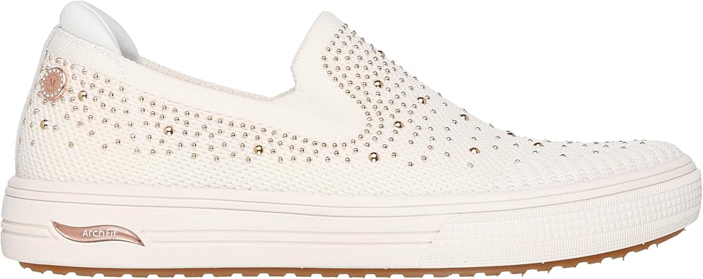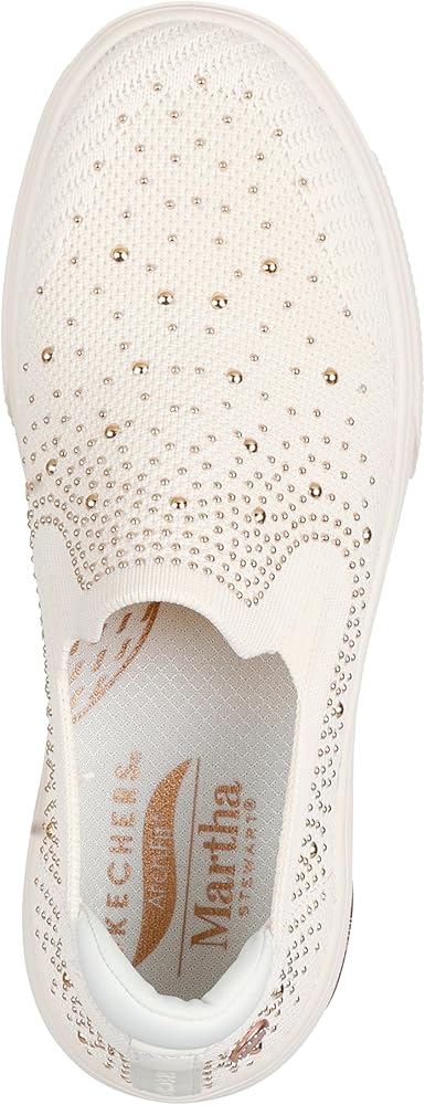 Celebrated lifestyle expert, Martha Stewart, delivers her one-of-a-kind touch to Skechers in this classically chic collaboration. Walk in supportive comfort with a stylish classic wearing Skechers Street Arch Fit Arcade. This easy-wearing design features a engineered kint upper with rhinestone details, removable Arch Fit insole and a lightweight cushioned midsole.
