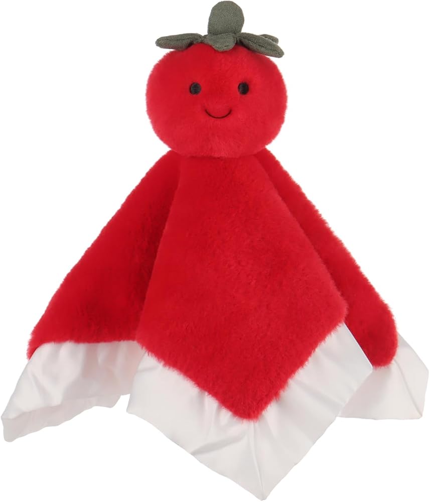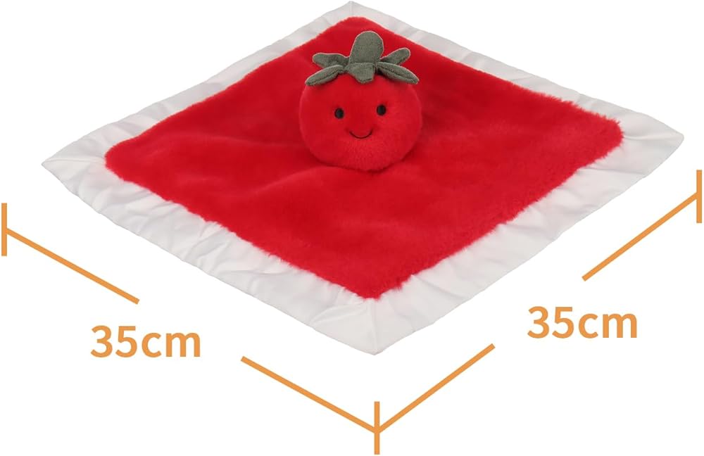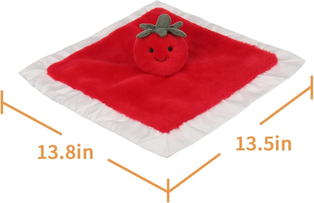 Perfect Companion: The infant baby lovey Fresh Tomato security blanket is an ideal companion for babies to play and snuggle. It measures 13.8 Inches, making it the perfect size for your baby to grip, stimulating tactile development and exercise hand strength.