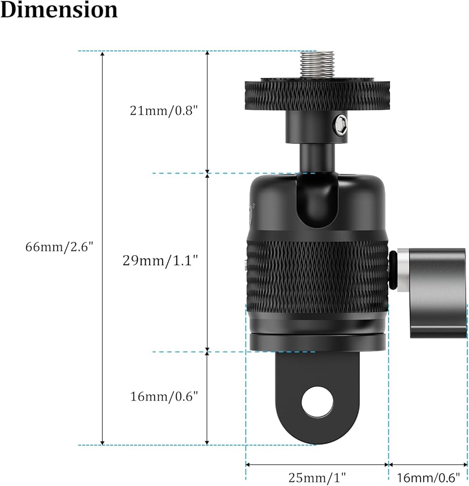 نهاية الخيط المدمجة: يتم توصيل المسمار 1/4 "-20 إلى الأعلى ، ومن المريح الاتصال بعصا شطورة ذاتية ، وكاميرا ترايبود ، وكاميرا insta360 x4/x3