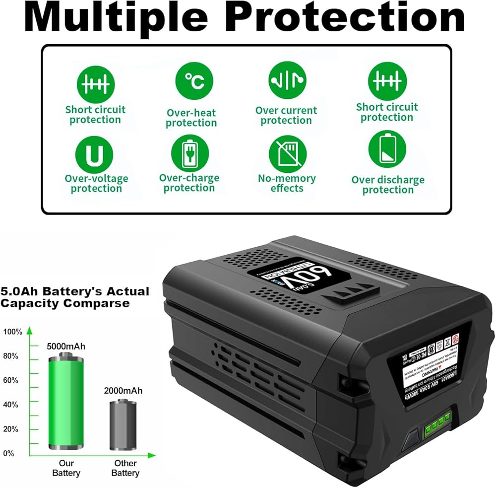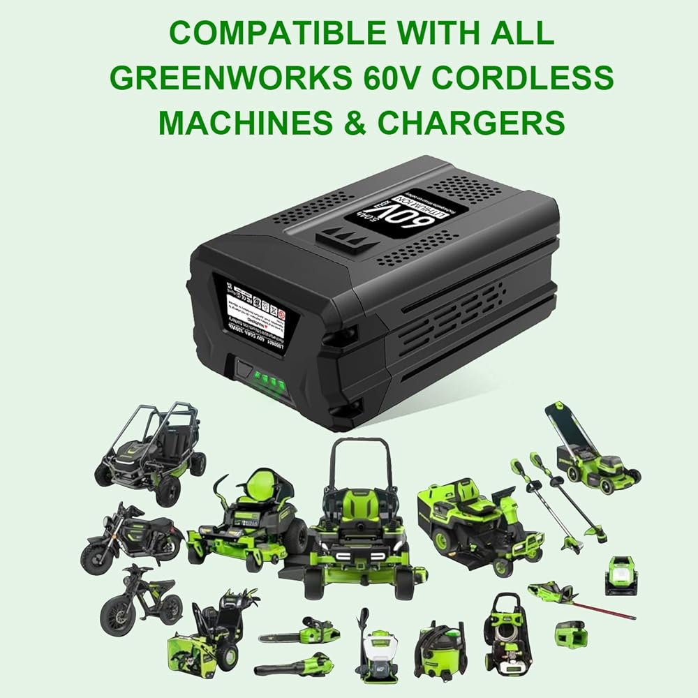 Compatible with 60V Tools: GreenWorks 60v Lawn Mower, Trimmers & Edgers, Chainsaws & Pole Saws, Blowers series