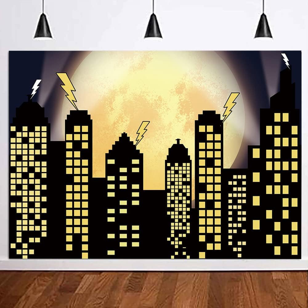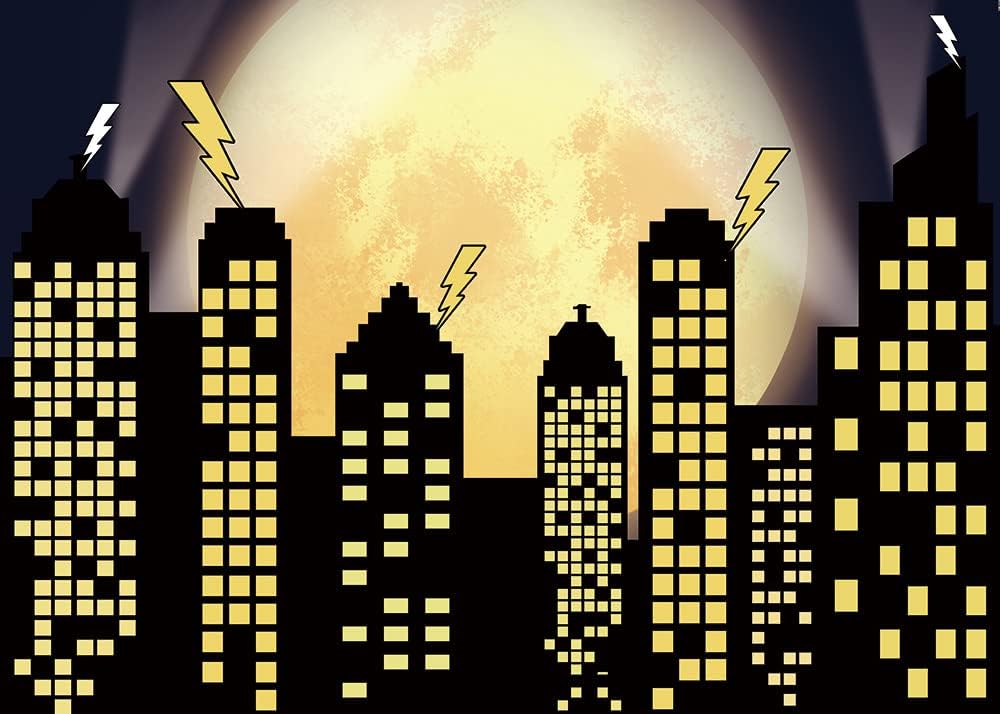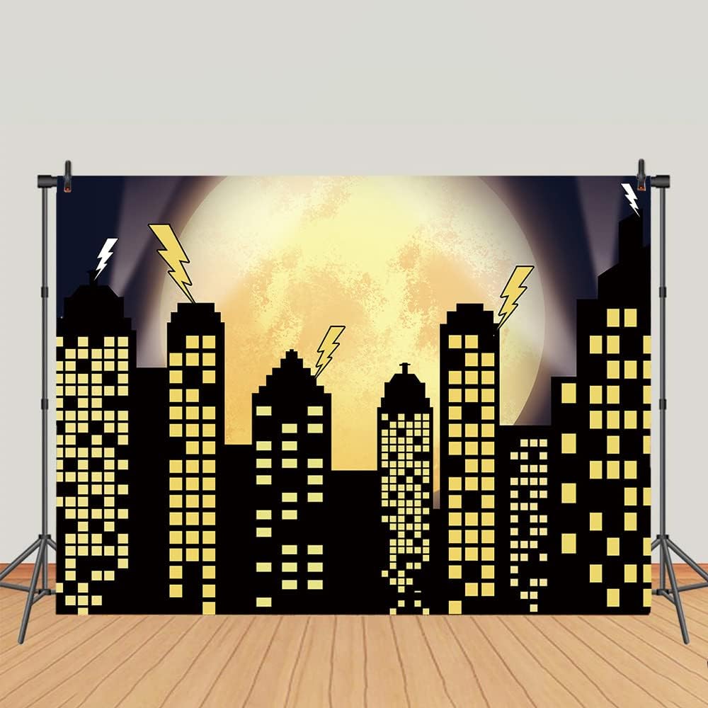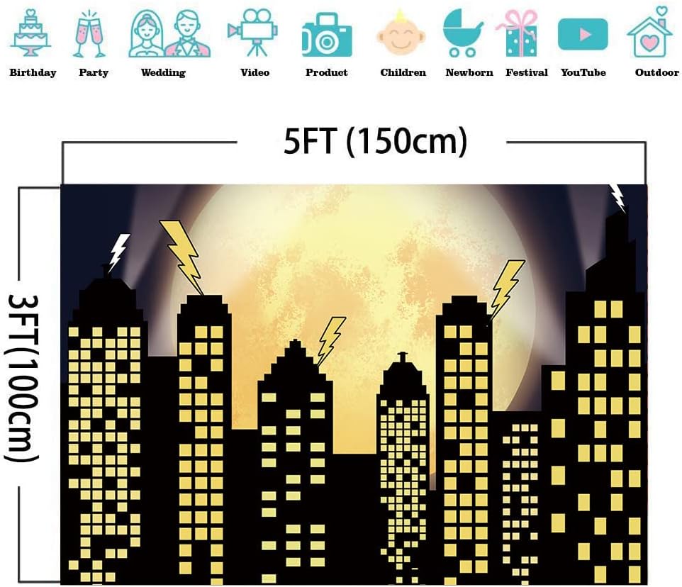 بطل خارق Super City التصوير الخلفي خلفيات Skyline Buildings City Boom Full Moon Bat Photo Photo Photo 5x3ft Vinyl Children Party Party Photo Photo Studio Cake Cake Decor