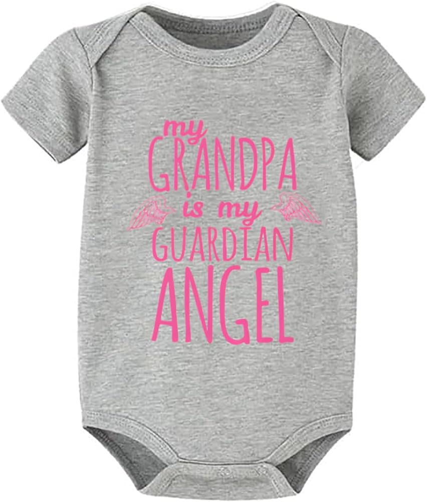 • This My Grandpa Is My Guardian Angel Baby onesie makes an adorably awesome gift for anyone who has a baby, knows someone with a baby, or is expecting a new baby. You can gift it to an expecting mother at a baby shower, for a pregnancy announcement, any holiday, special occasion, gender reveal, due date, Mother's day present, or just because you feel like it! It doesn't just have to be for a new mom though. Little nieces, nephews, grandkids, cousins, and alike would look cute on this onesie.
