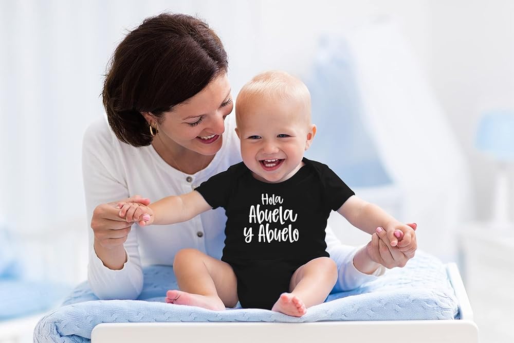 • Unique and Original Gift Idea: Elevate your gift-giving with this cute and adorable Hola Abuela y Abuelo one-piece infant bodysuit. It's the perfect present for baby showers, pregnancy announcements, baby birthdays, gender reveals, due dates, Christmas, New Year, and for mom-to-be or Mother's Day. This charming baby creeper makes an excellent gift from a grandpa, grandma, aunt, uncle, niece or nephew. Bring joy and laughter with this thoughtful gift for the newest addition to the family.