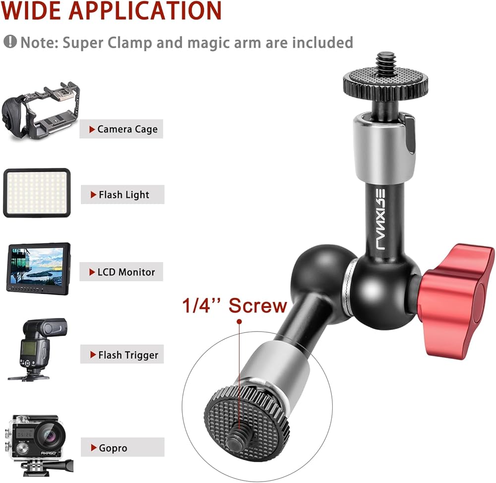 【5.9 بوصة الذراع السحرية】 مع خيط 1/4 بوصة على طرفين من الذراع السحري لتثبيت مشبك الكاميرا الفائقة ، أي مصابيح فلاش على الكاميرا ، منصة كاميرا DSLR ، ميكروفون ، شاشة LCD ، شاشة DV ، إلخ. إنها مثالية ل جميع احتياجات التصوير الفوتوغرافي والفيديو.
