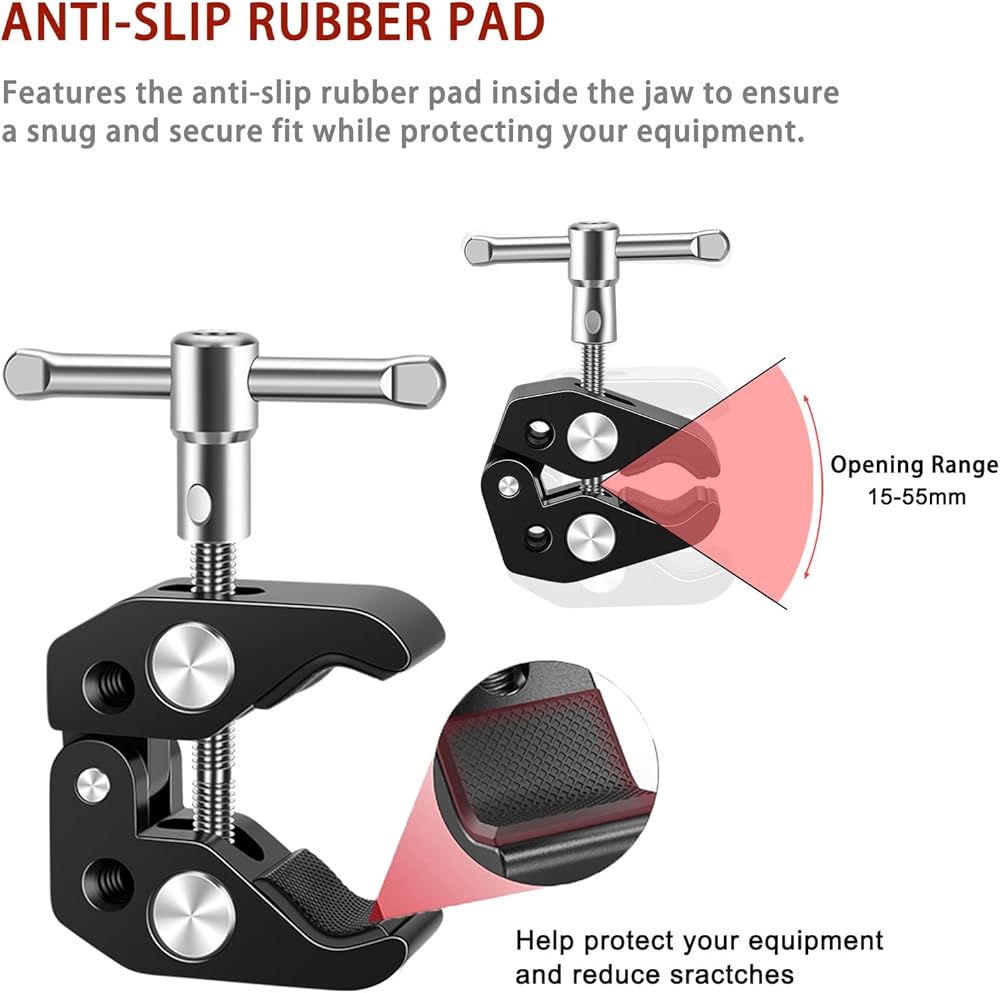 【صغيرة ومريحة】 5.9 بوصة الذراع السحرية ومشبك الكاميرا الفائقة خفيفة الوزن ويمكن أن تنزلق بسهولة في الجيب. إنه مثالي للأحداث الداخلية والخارجية. حمولة الوزن القصوى 2 كجم. اضبط العرض من 15 مم إلى 55 مم.