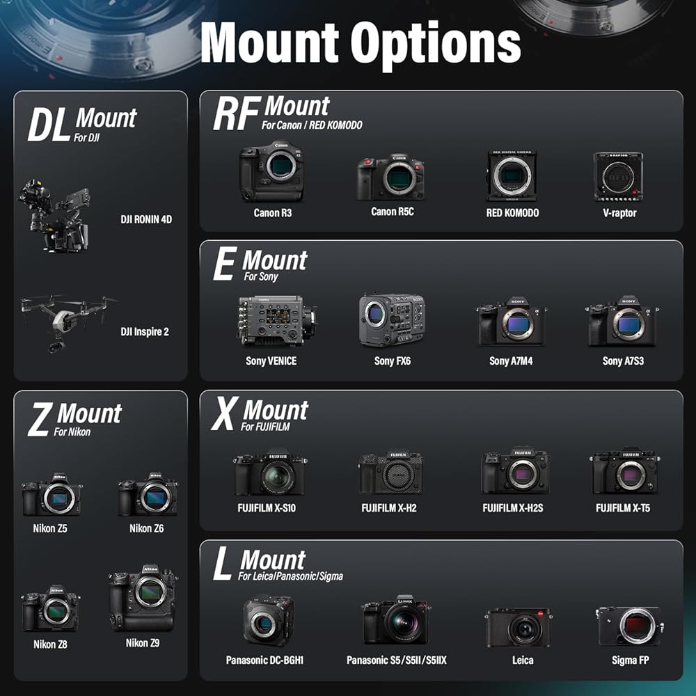 عامل الضغط 1.6x الممتاز: هذا بصري مشوي يعادل FOV الأفقي لعدسة كروية 22 مم FF. يوفر عامل الضغط الممتاز هذا صور نسبة العرض إلى ارتفاع 2.4: 1 عند استخدام وضع مستشعر 3: 2 ويحقق إطارًا أوسع 2.8: 1 عند التصوير عند وضع 16: 9 ، مما يوفر زاوية عرض أوسع ويتميز بالمفتاح على نطاق واسع -العالم السينمائي شاشة.