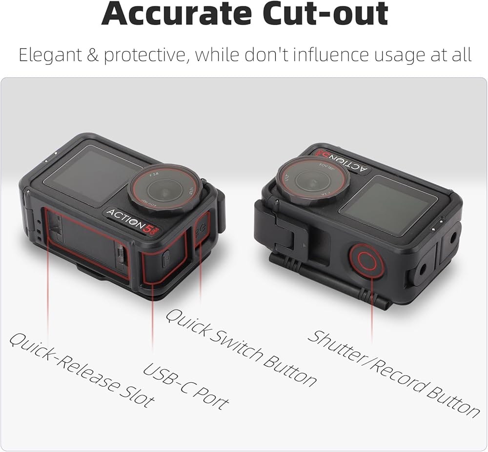 4- 3in1 Function: This frame cage can provide sunshading, can protect your action camera screen from scratches and accidental cracks during carrying, and can be a adapter for gopro mounting.