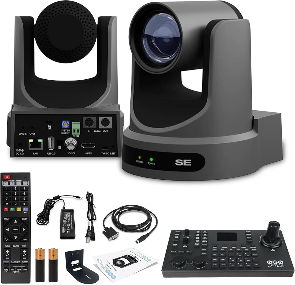 Items Included: 1 x PTZOptics Move SE SDI/HDMI/USB/IP PTZ Camera with 30x Optical Zoom (Gray), 1 x PTZOptics SuperJoy NDI|HX/IP & Serial PTZ Camera Joystick Controller, 1 x PTZOptics Universal Small Camera Wall Mount (Black)